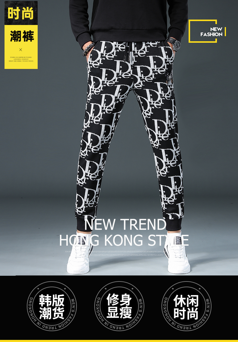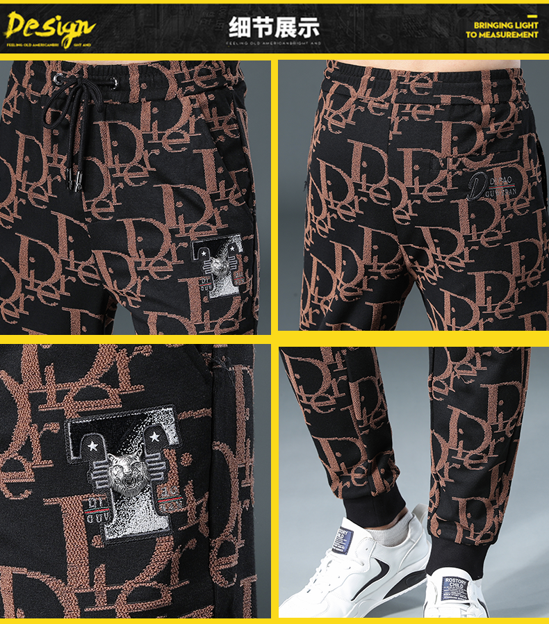 潮牌輕奢提花男秋季新款束腳休閑褲