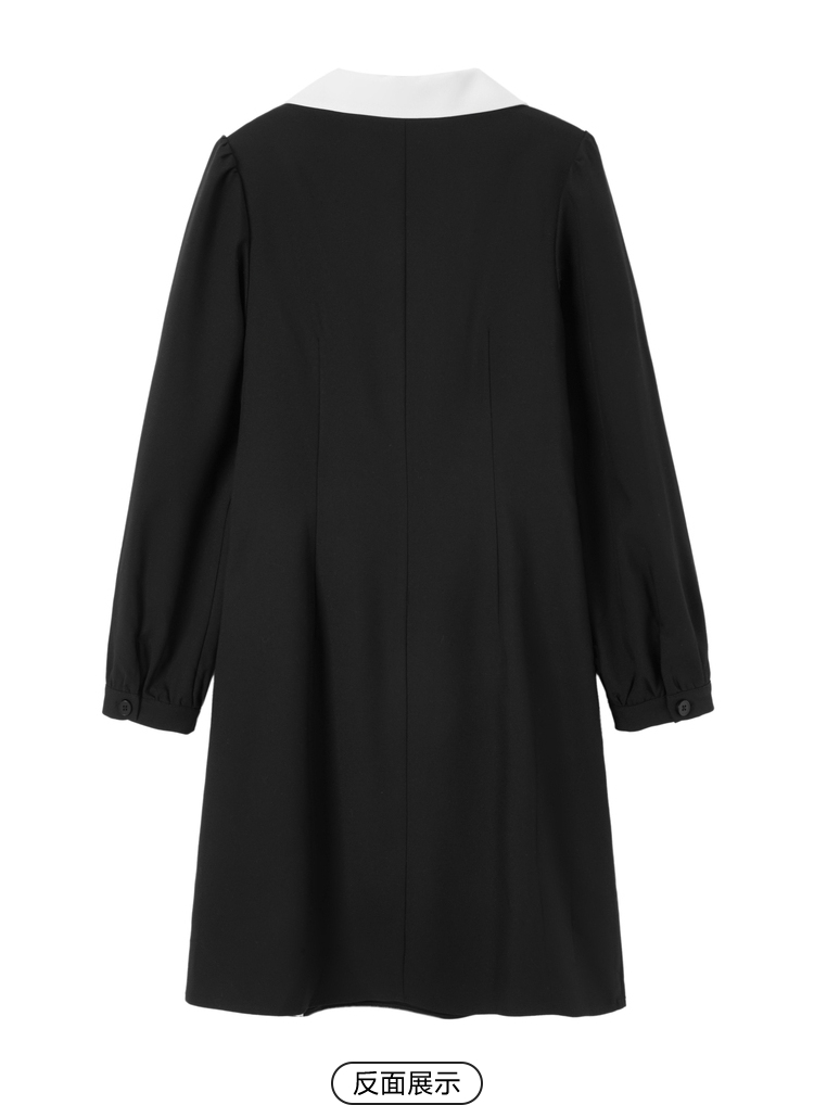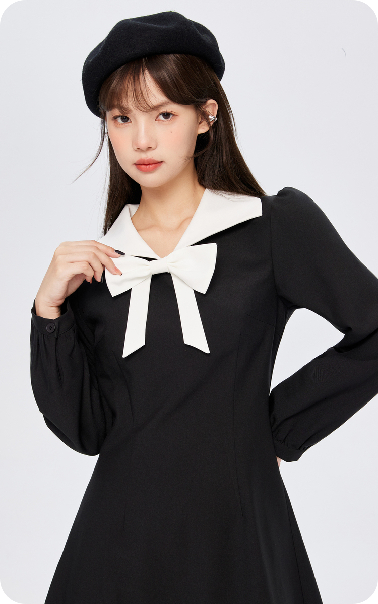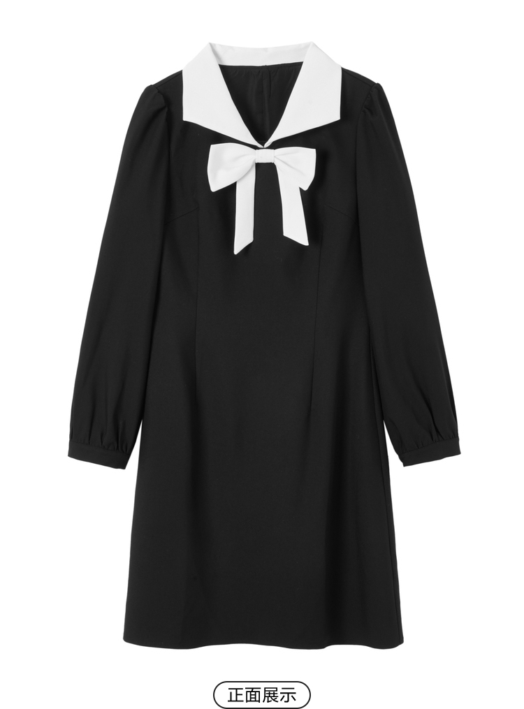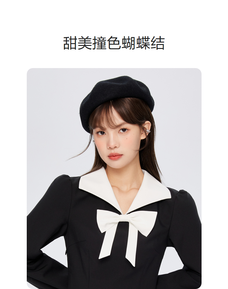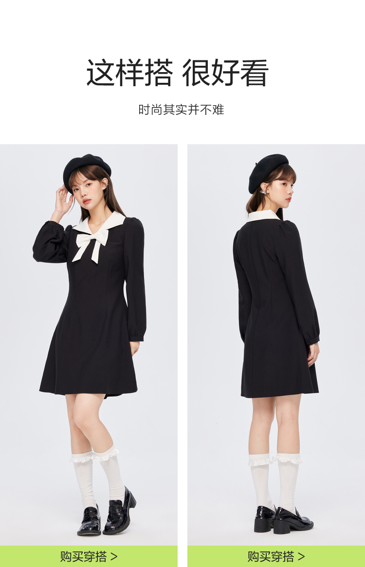 森馬連衣裙女泡泡袖蝴蝶結小黑裙甜酷2022冬新款甜美撞色裙子韓版