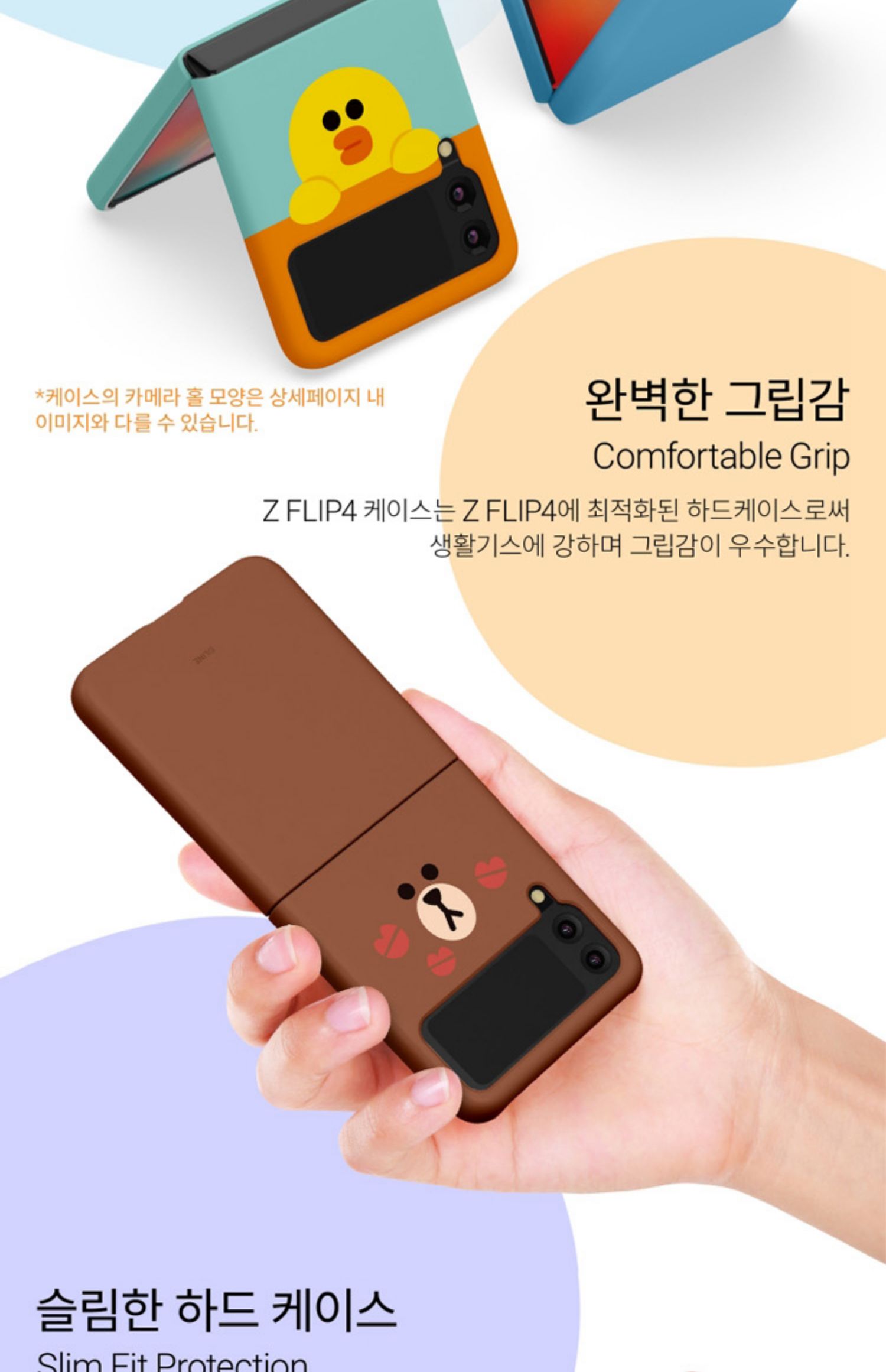 韓國line布朗熊適用三星zflip4卡通手機殼可愛純色z flip4保護套