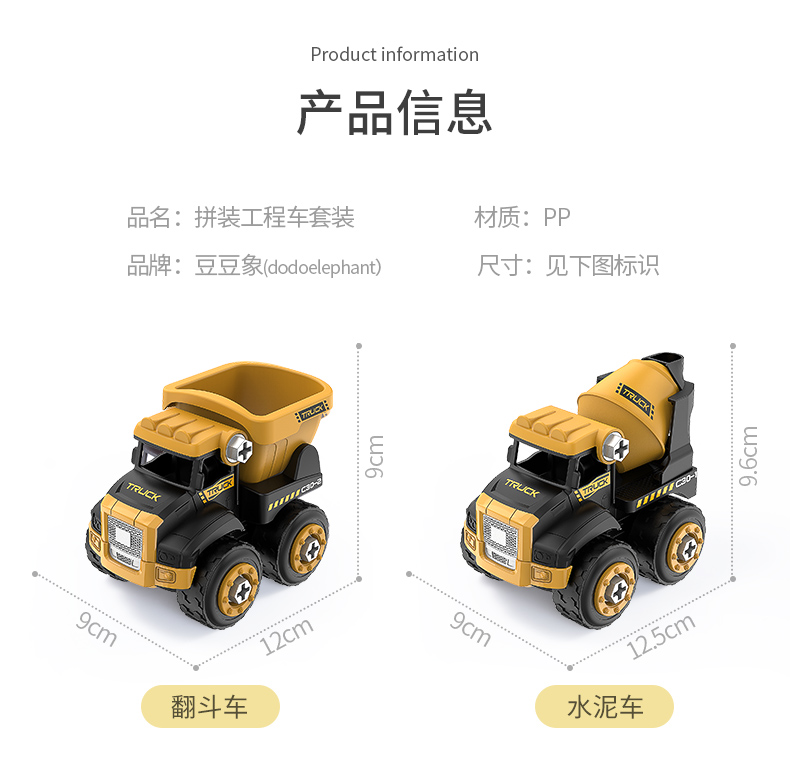 豆豆象677拼裝工程車消防車玩具兒童益智電鉆拆裝螺絲工具箱套裝
