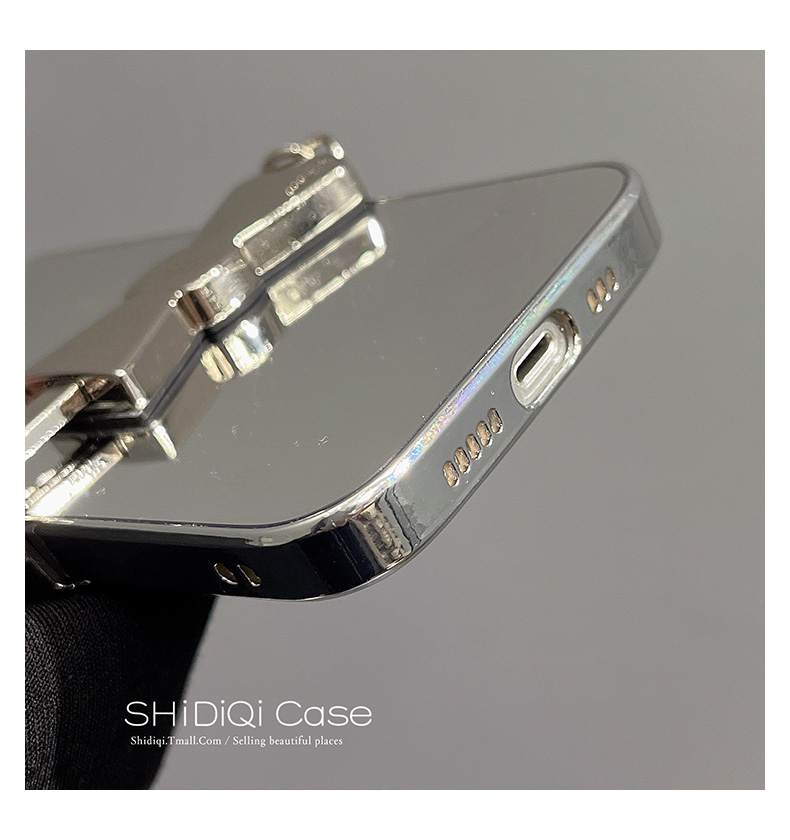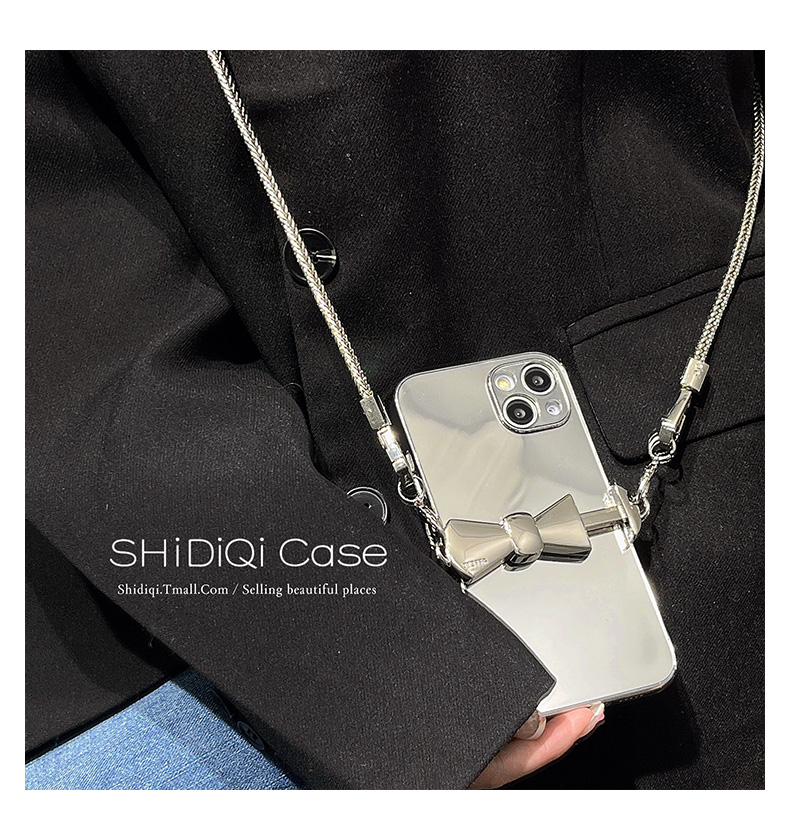 高級感電鍍蝴蝶結背夾斜挎鏈條適用蘋果14plus手機殼iPhone13ProMax新款12防摔11女鏡面創意腕帶冷淡風保護套