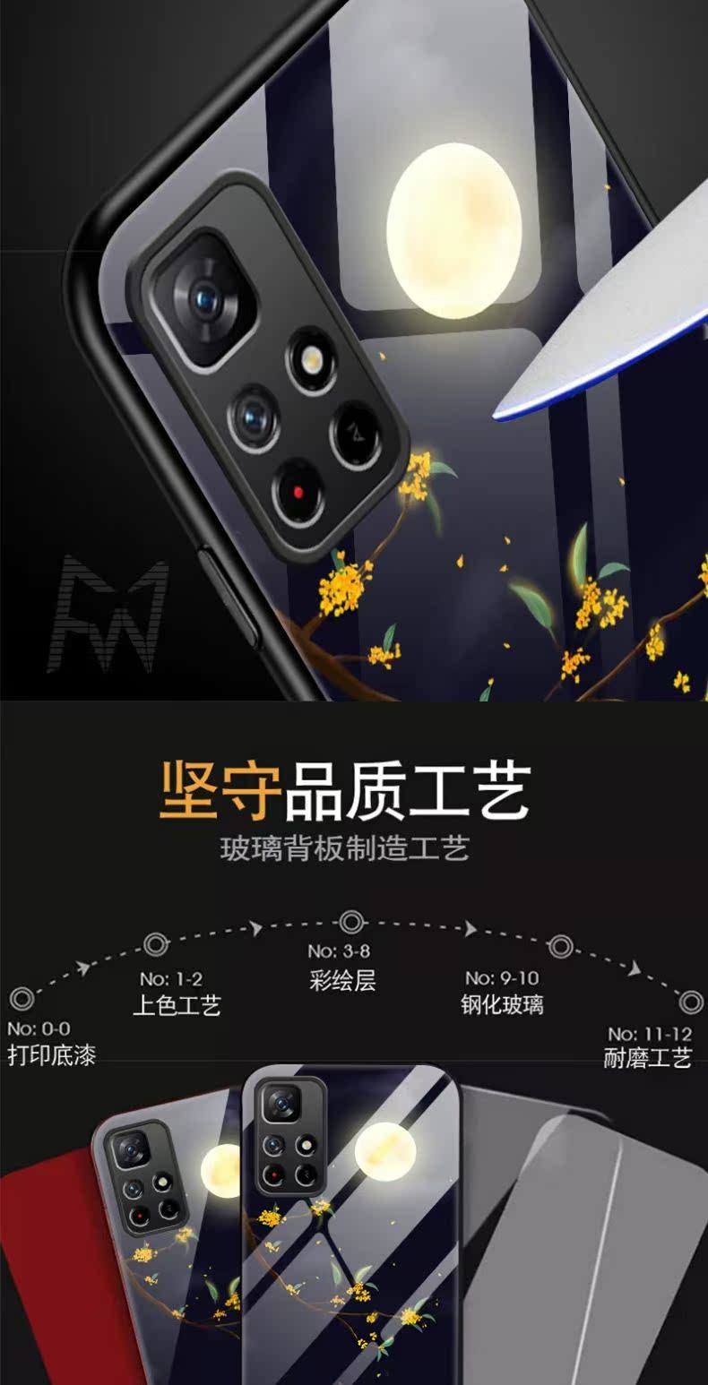 紅米note11(5G)手機殼NoteT11Pro玻璃保護套n0te十一Tpro+全包防摔Redmi硅膠軟邊硬殼n0ta11p0r男女月下花新