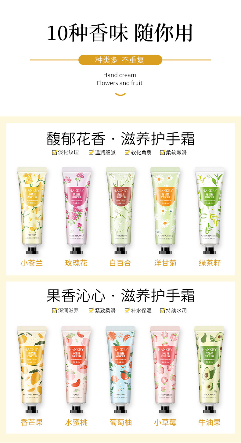 10支鮮果秋冬護手霜禮盒裝補水保濕滋潤防干裂修護清爽小支便攜裝