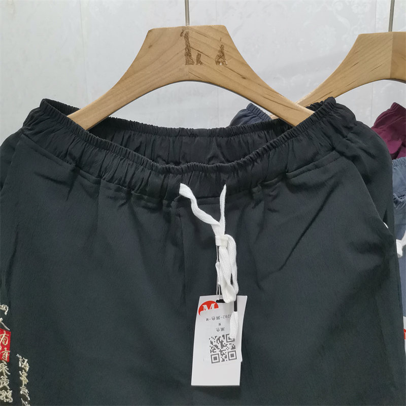 復古風刺繡外穿五分褲百搭中褲休閑短褲男潮流ins夏季棉麻大褲衩