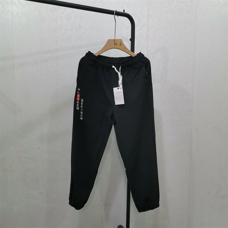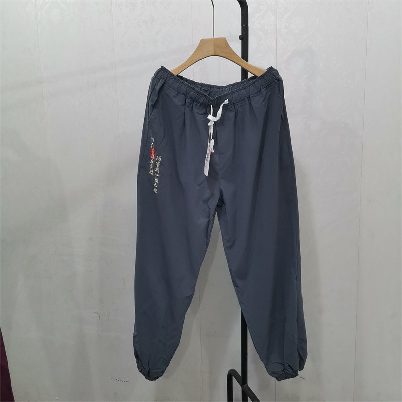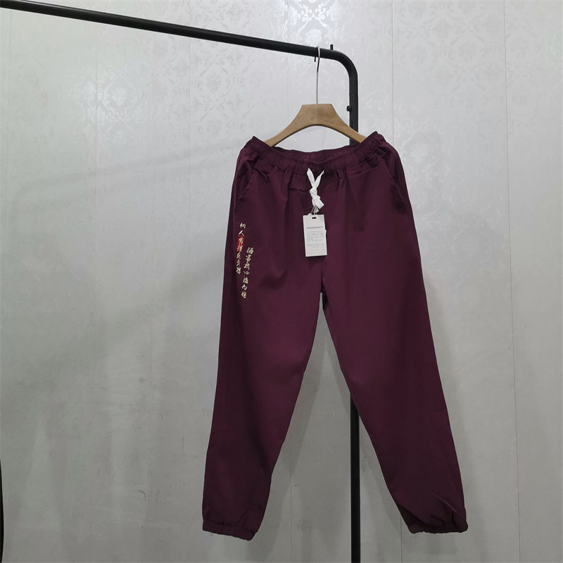 春夏季潮流小腳哈倫褲刺繡純色束腳褲九分褲男士中國風棉麻休閑褲