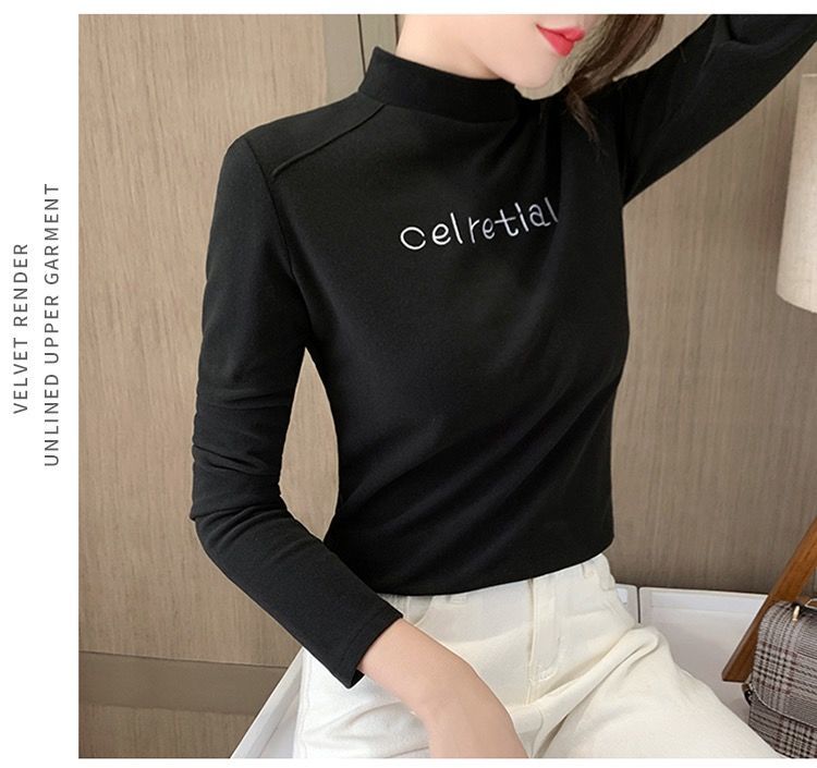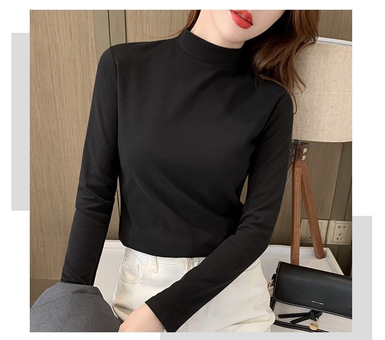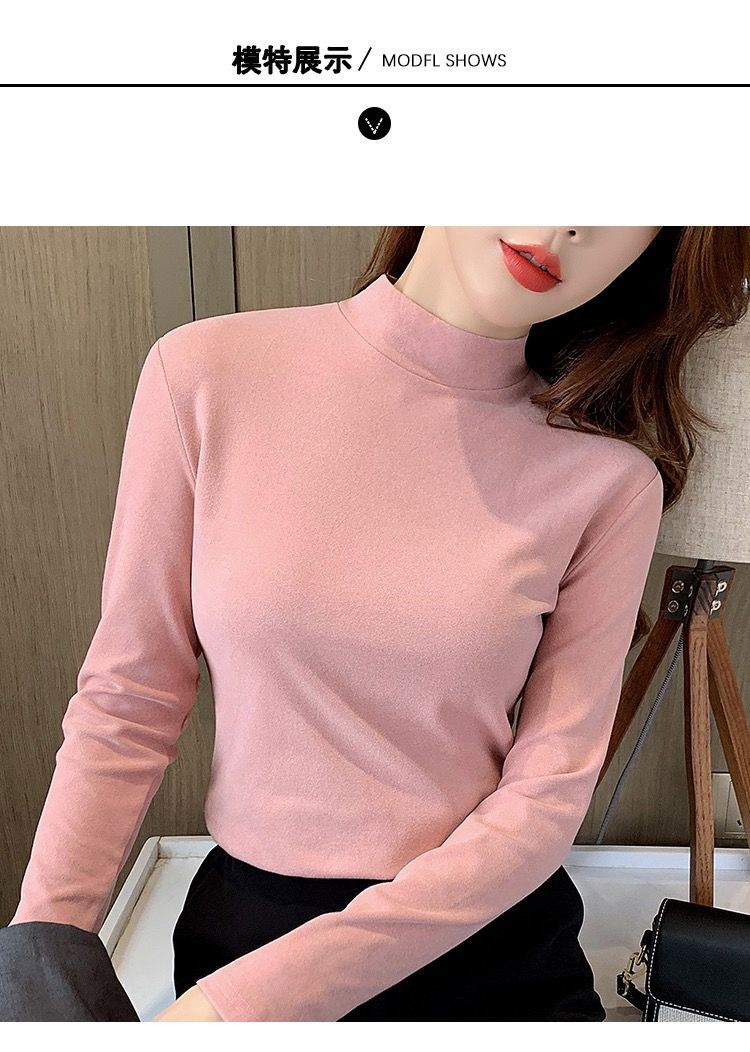 單/兩件裝 雙面德絨半高領保暖打底衫上衣秋冬修身百搭長袖t恤女