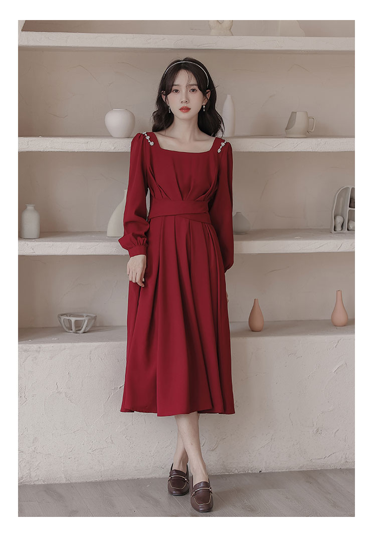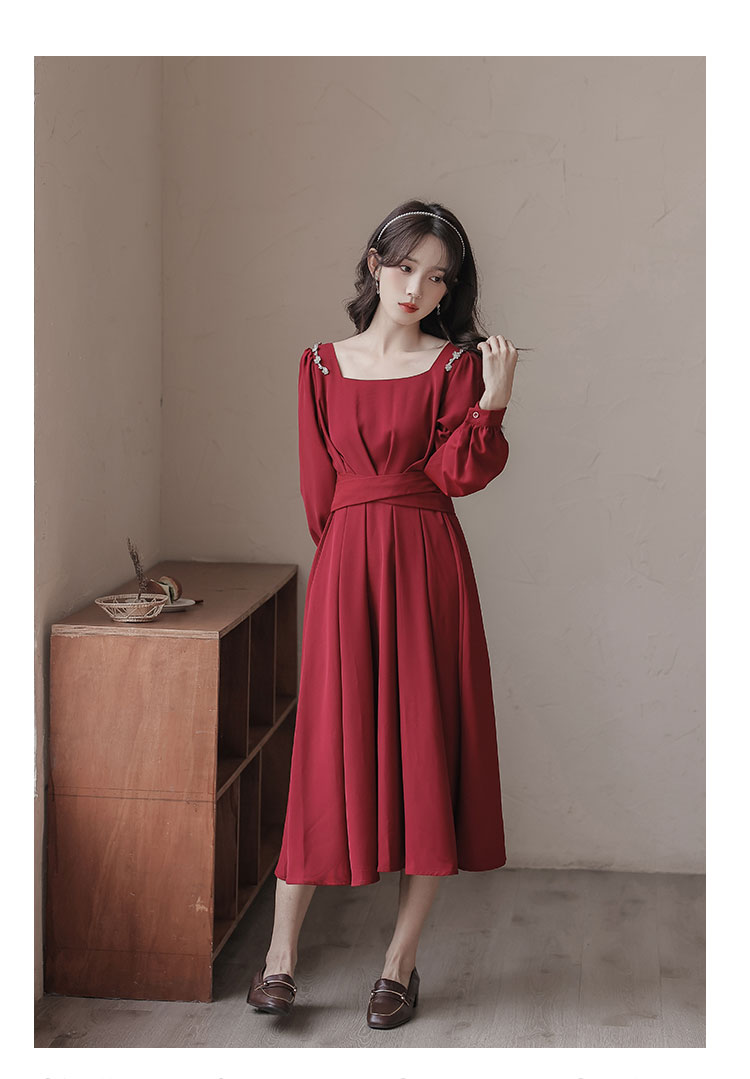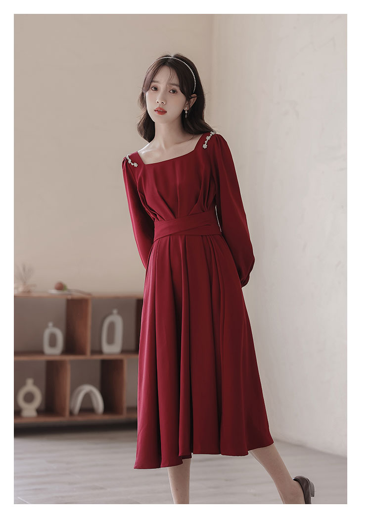 別致紅色連衣裙秋季敬酒服新娘回門服高級感氣質訂婚禮服平時可穿