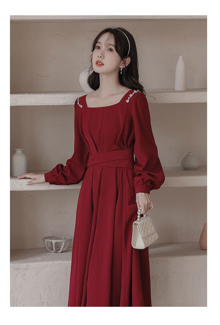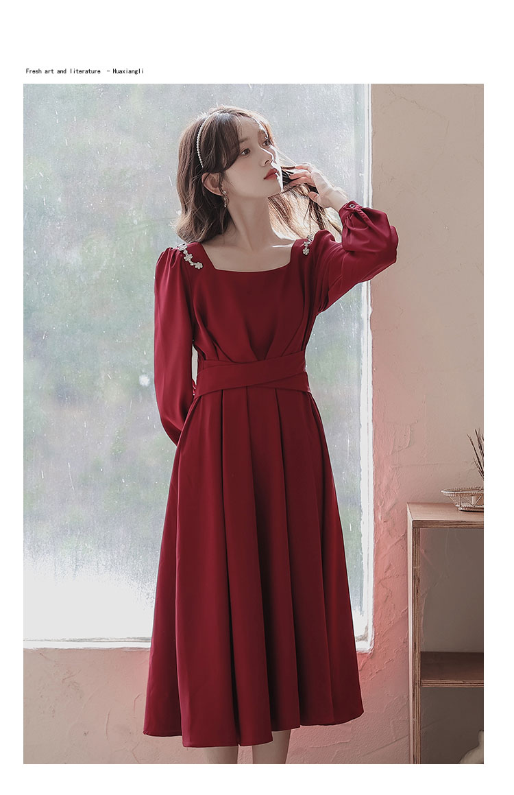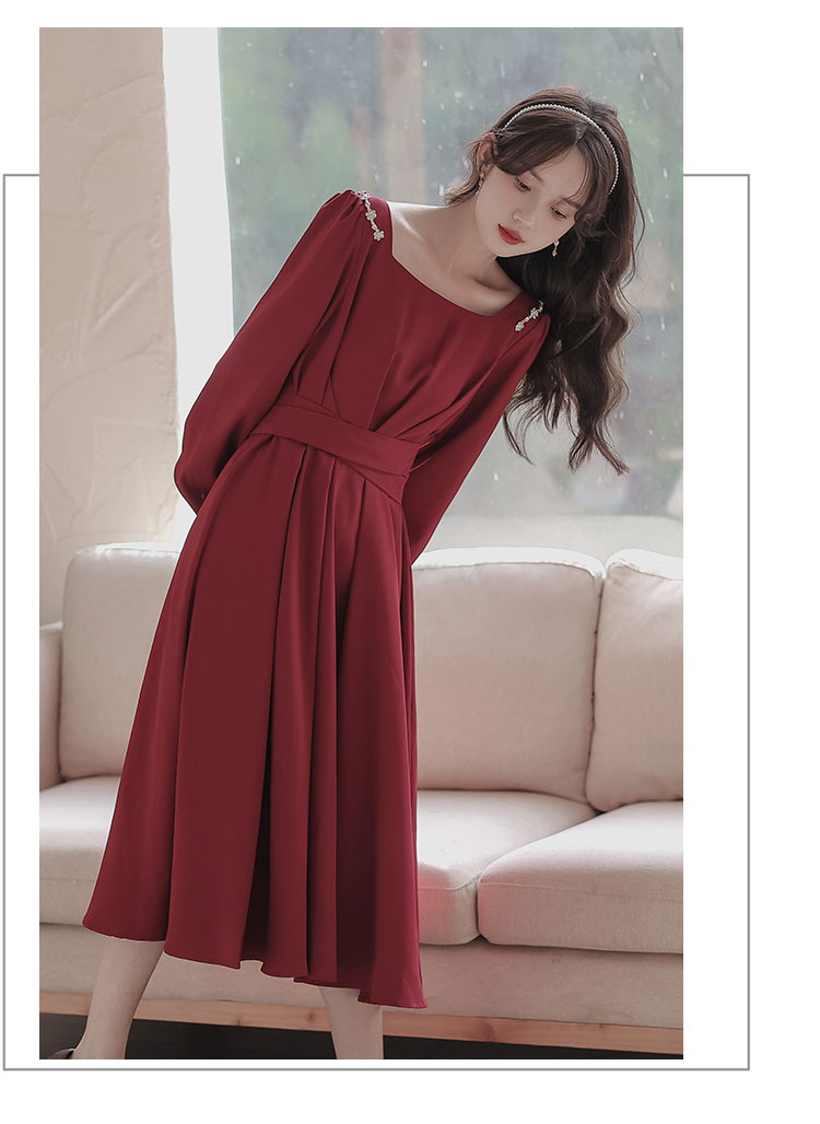 新娘酒紅色敬酒服平時可穿高級感禮服秋季2023新款回門訂婚連衣裙