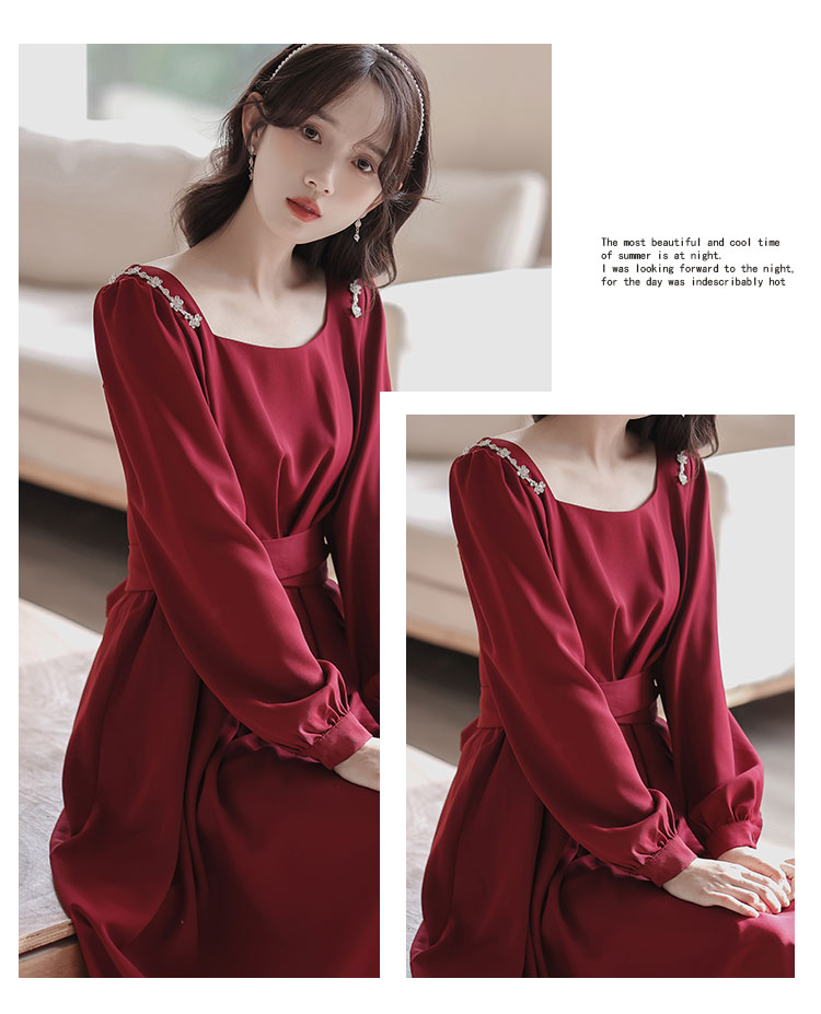 絲絨紅色連衣裙秋冬新娘回門敬酒服
