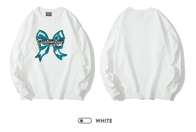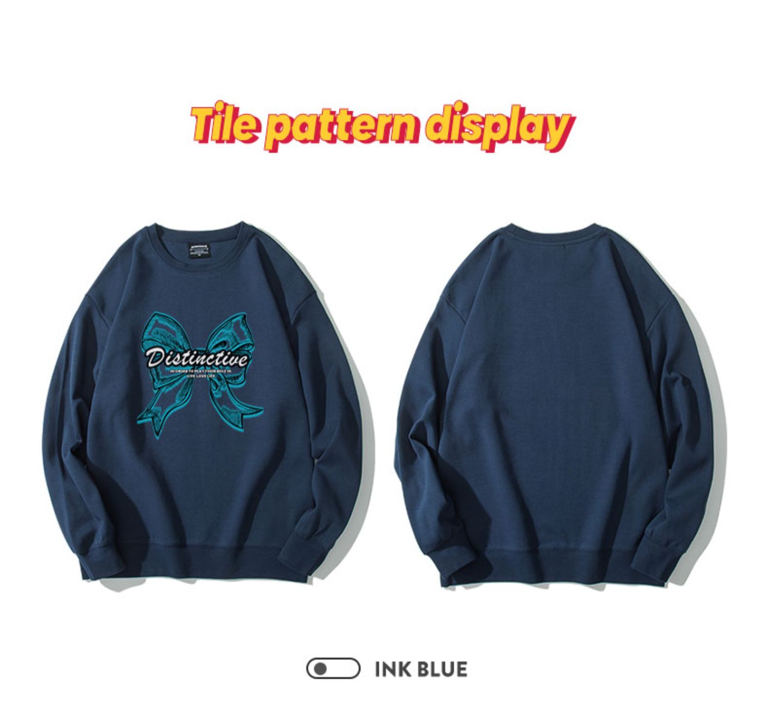 jktee新款蝴蝶結藍色圓領衛衣女秋季加絨寬松學院風無帽套頭外套