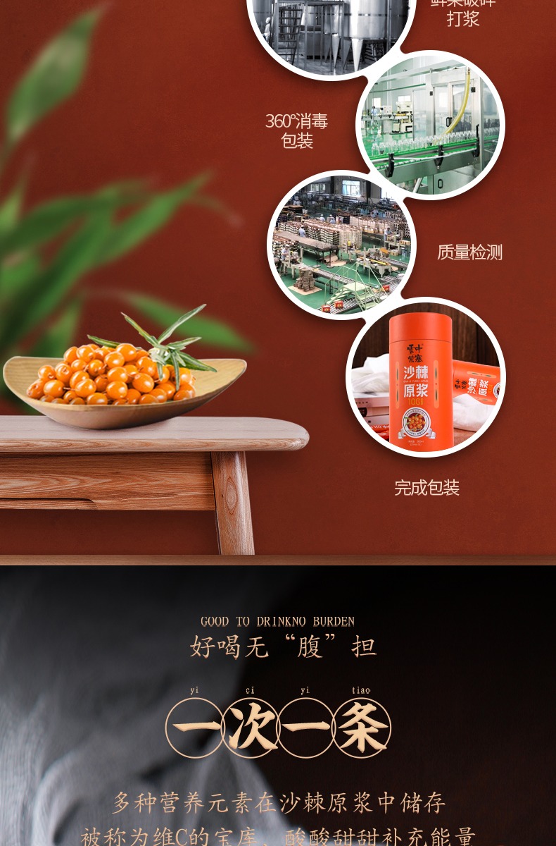 沙利舒沙棘復合果漿內蒙古鮮果鮮榨沙棘原漿生榨果汁飲料小袋分裝