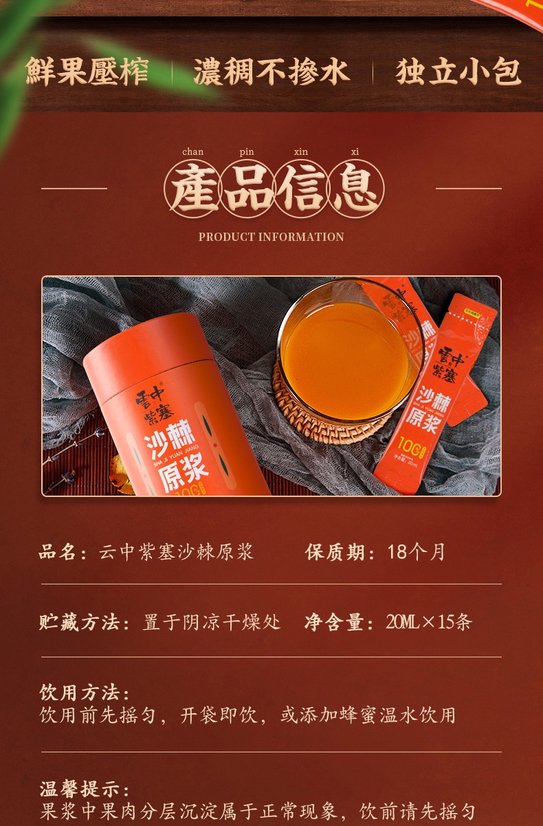 呂梁野山坡生榨沙棘原漿100%純果汁