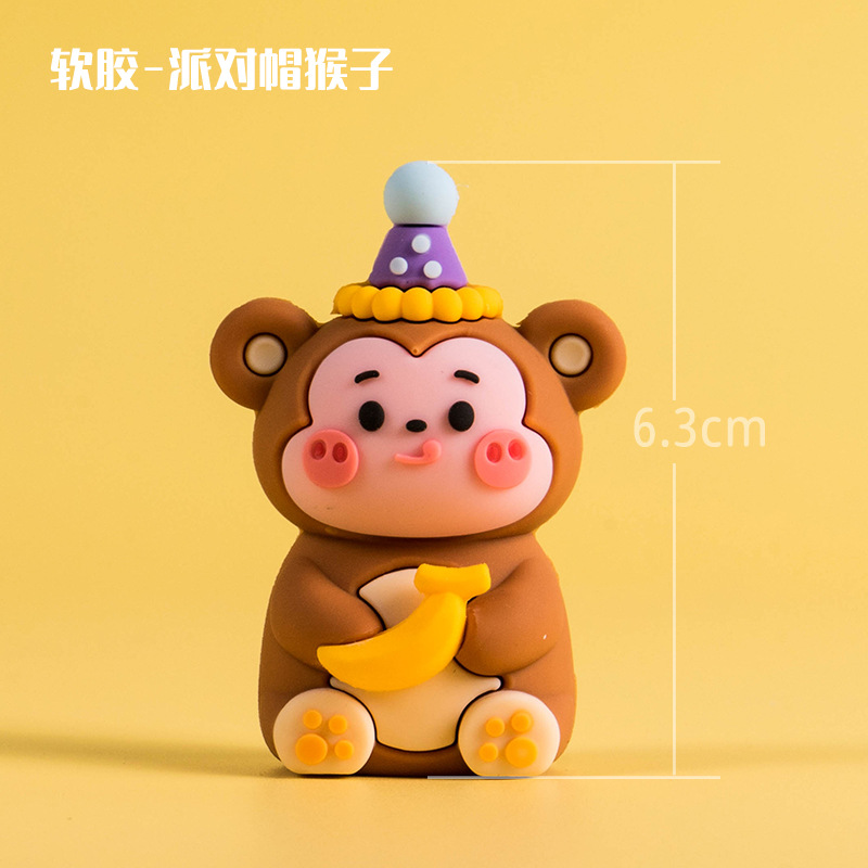 軟膠滴膠卡通生日帽小動物烘焙蛋糕裝飾擺件小奶牛小老虎甜品裝扮