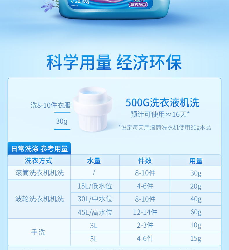 藍月亮洗衣液薰衣草香深層潔凈500g*2瓶裝強效去污官方旗艦店正品