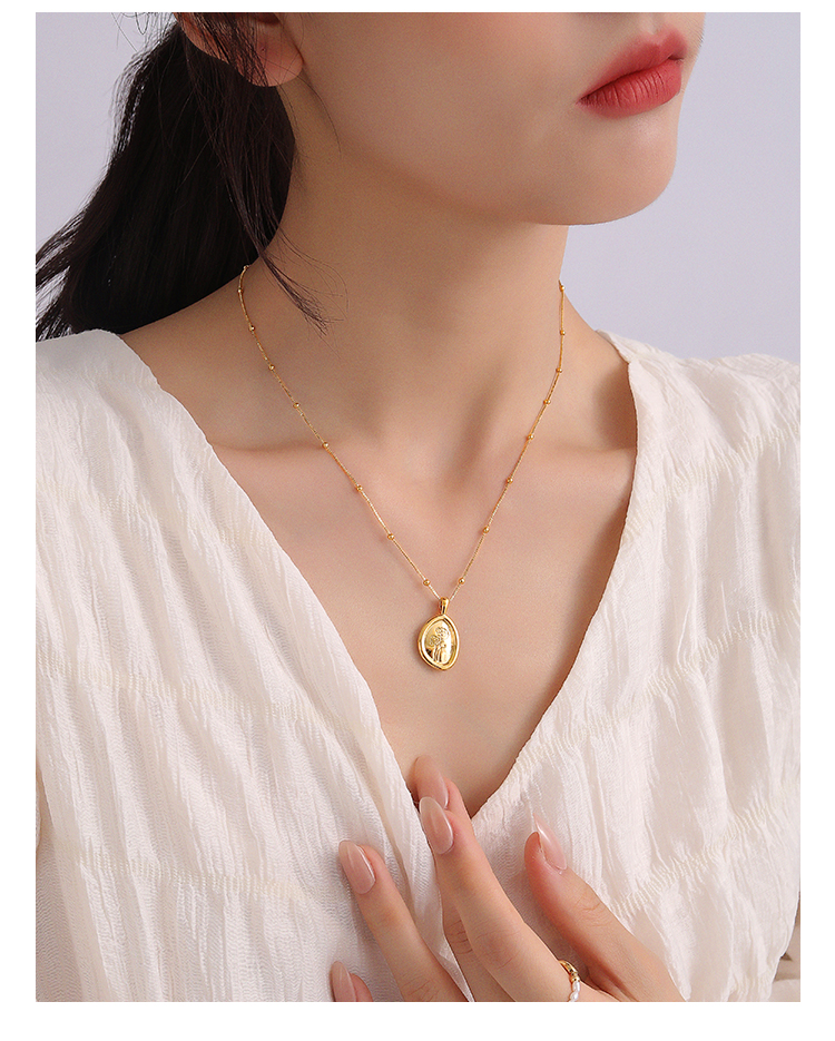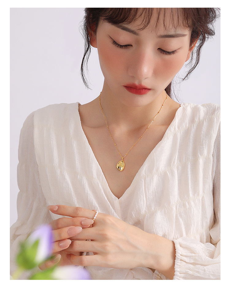 玫瑰橢圓牌項鏈女輕奢小眾設計高級感鍍18K金2023新款毛衣鏈頸鏈