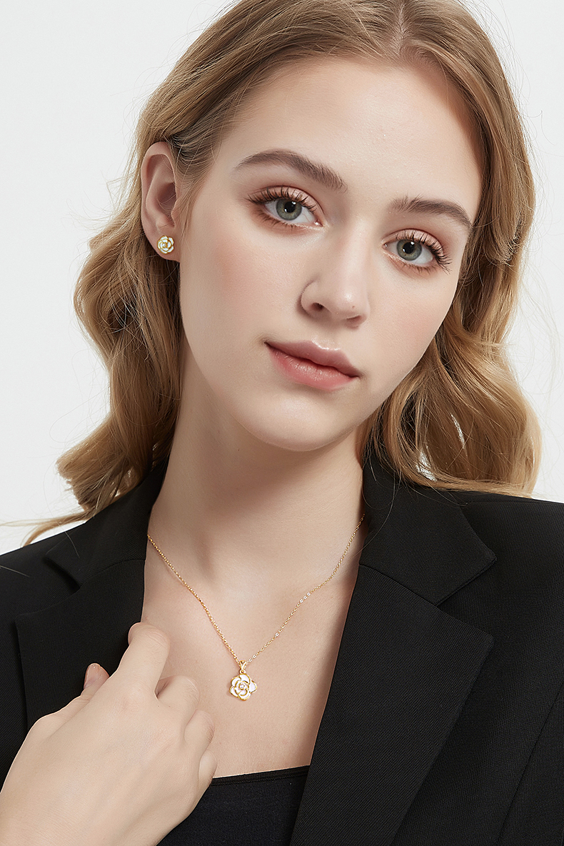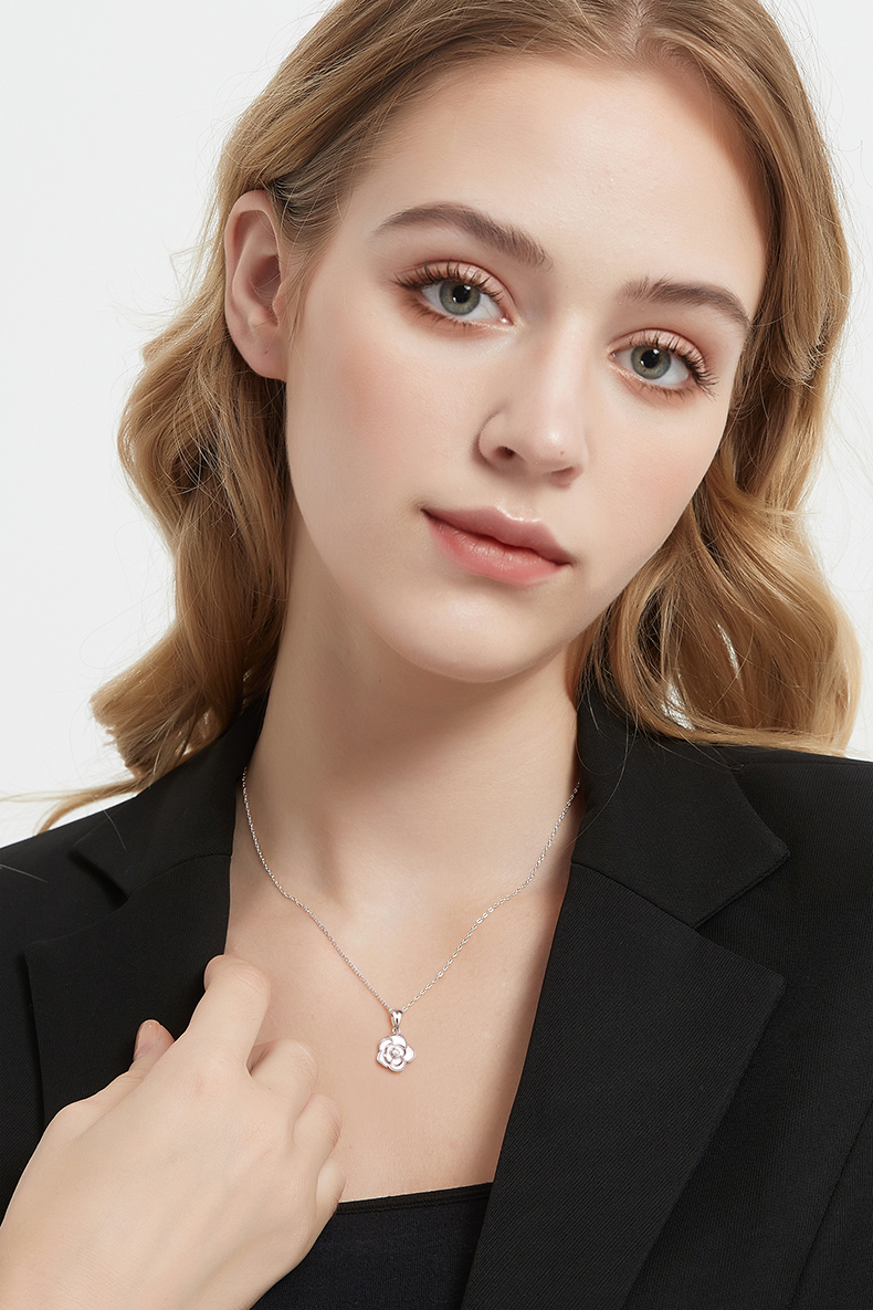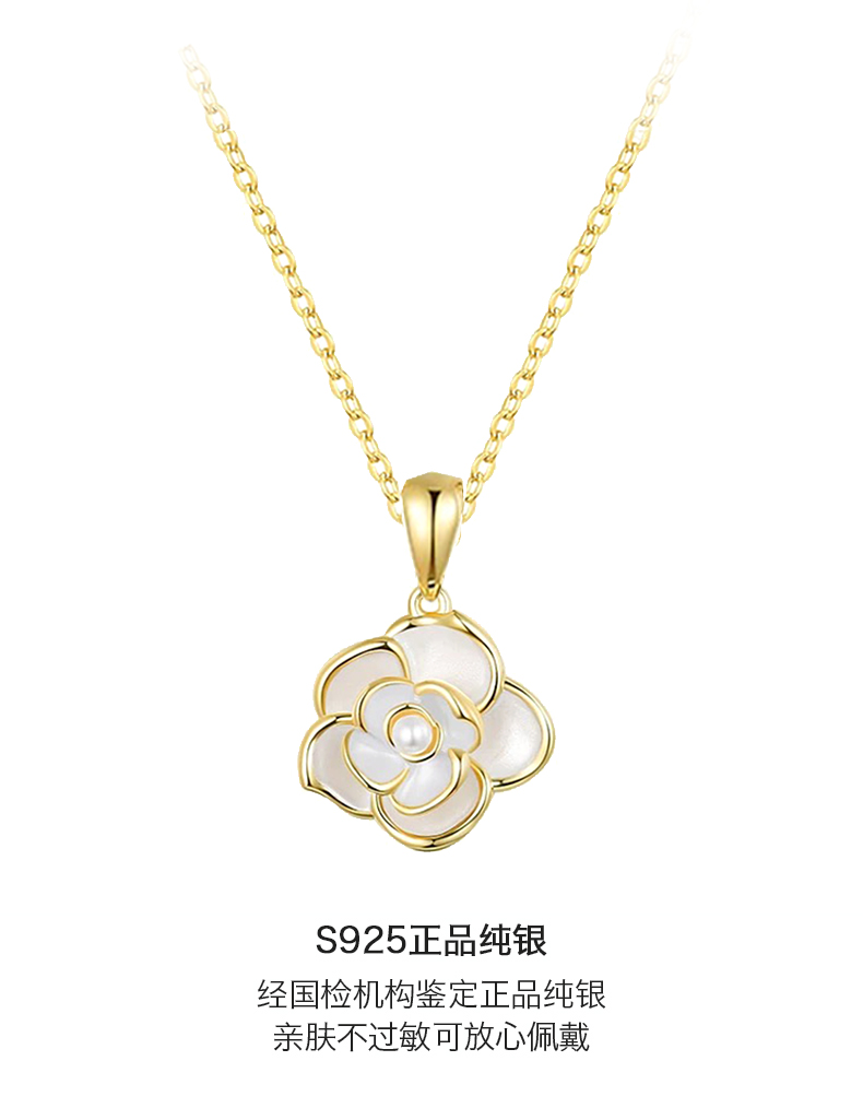 純銀山茶花珍珠項鏈小香風輕奢小眾高級鎖骨鏈送媽媽2023新款爆款