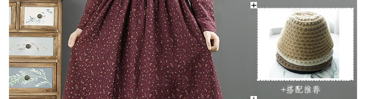 千秋飛燕文藝復古加絨棉麻碎花連衣裙女冬季寬松荷葉領收腰長裙子