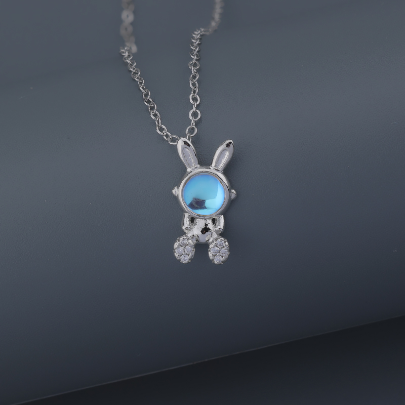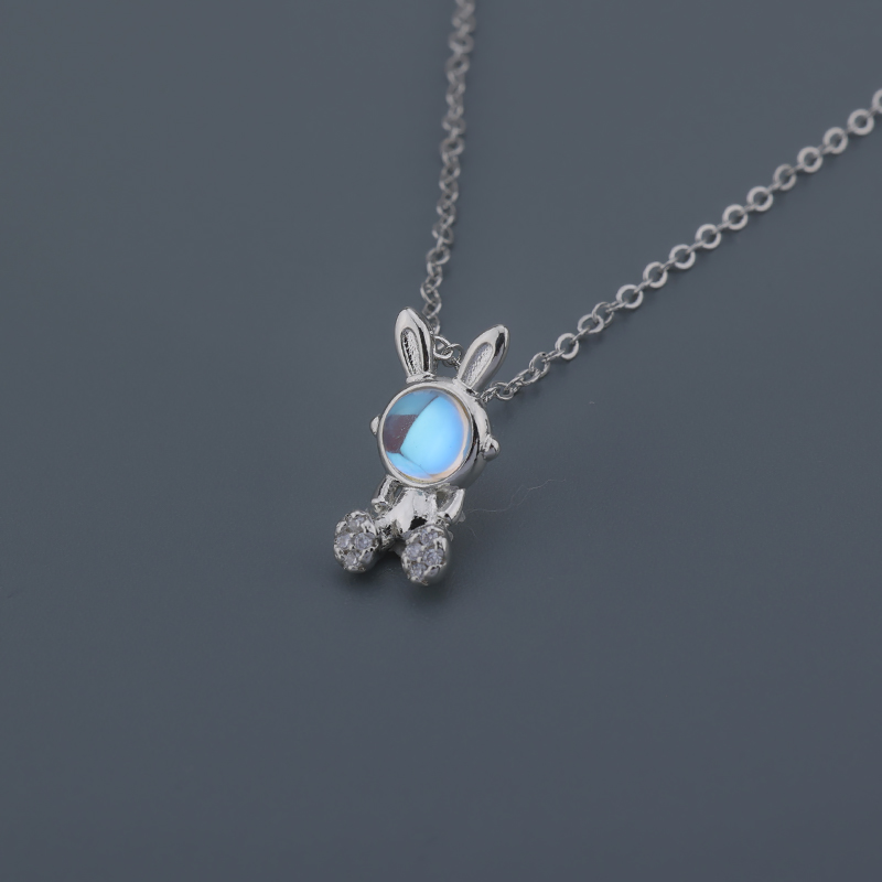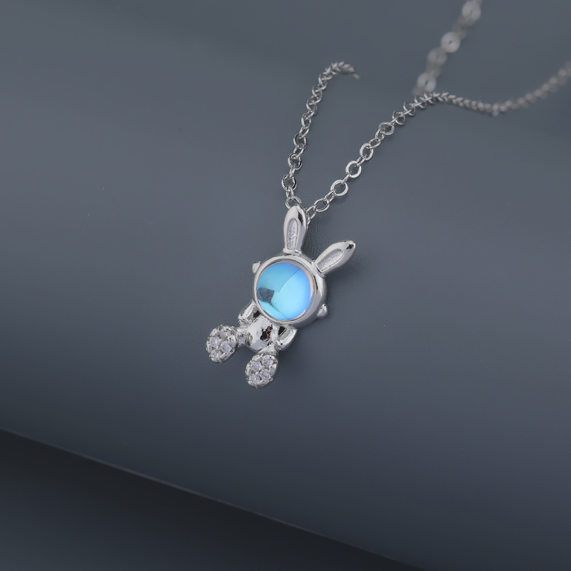 s925純銀月光石小兔子項鏈女2022年新款冷淡風生肖兔吊墜鎖骨鏈