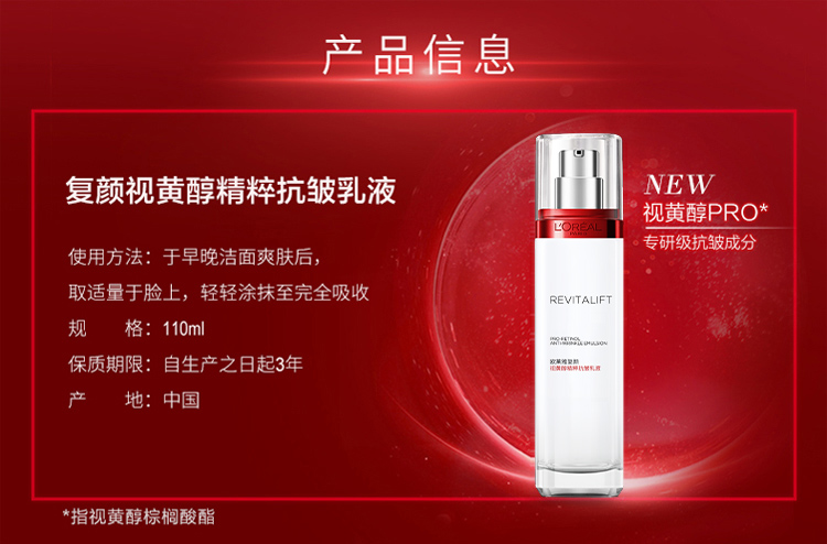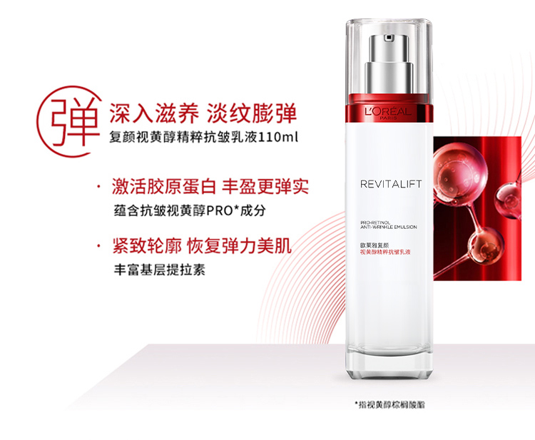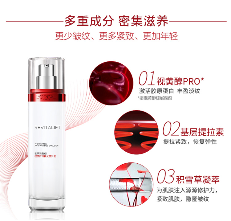 歐萊雅復顏乳液提拉緊致抗皺滋潤補水保濕淡化細紋面部護膚品正品