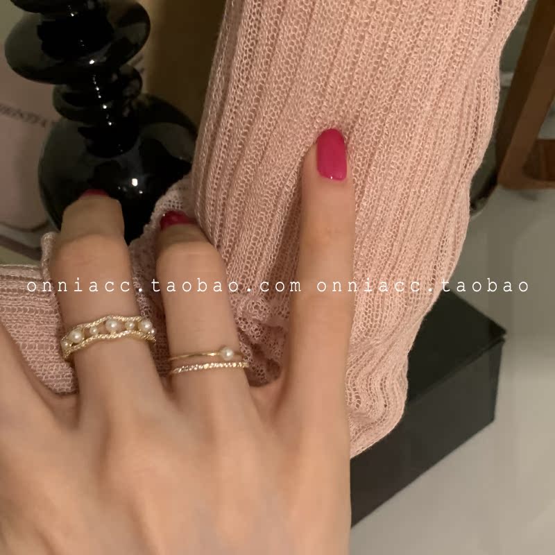 韓國水鉆珍珠戒指女食指雙層小眾設計高級感時尚個性ins潮網紅