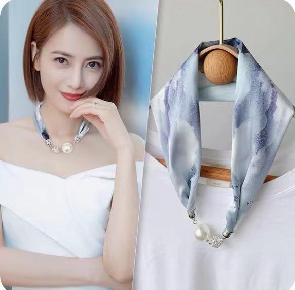 磁扣絲巾女夏裝飾護頸高級感領巾項鏈圍巾鎖骨鏈發帶圍脖衣服掛件
