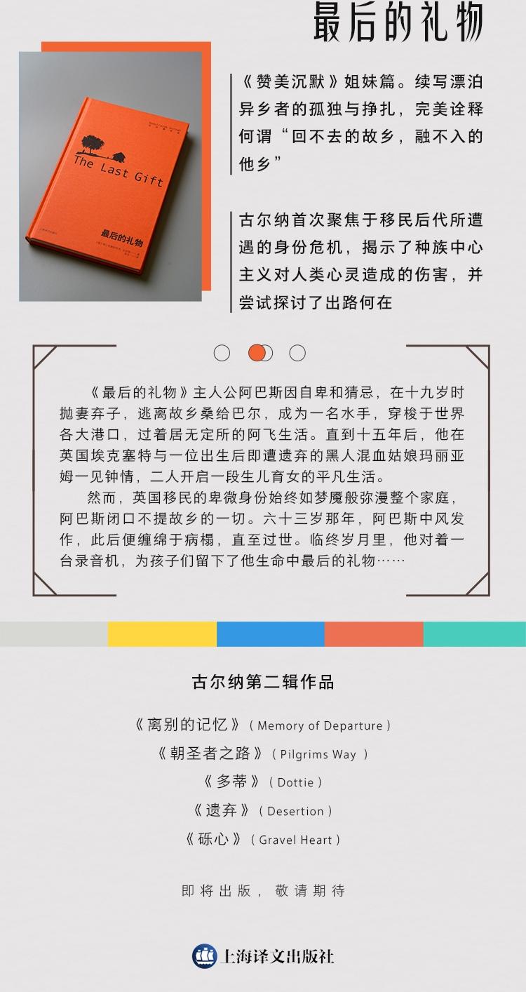 2021年,阿卜杜勒拉扎克?古爾納因“他對殖民主義文學的影響,以及對身處于不同文化夾縫中難民處境毫不妥協且富有同情心的洞察”獲得諾貝爾文學獎。此次“古爾納作品”在國內首都整體引進并出版,第一輯將出版他的五部作品:《天堂》《來世》《海邊》《贊美沉默》《的禮物》。
