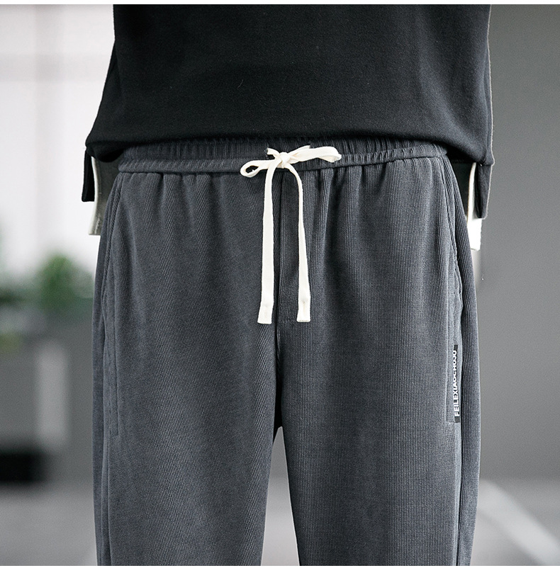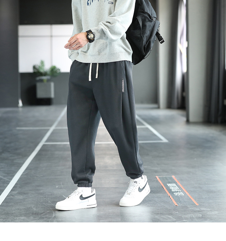 胖子加絨休閑褲寬松束腳透氣舒適透氣200斤大碼男士冬季保暖長褲