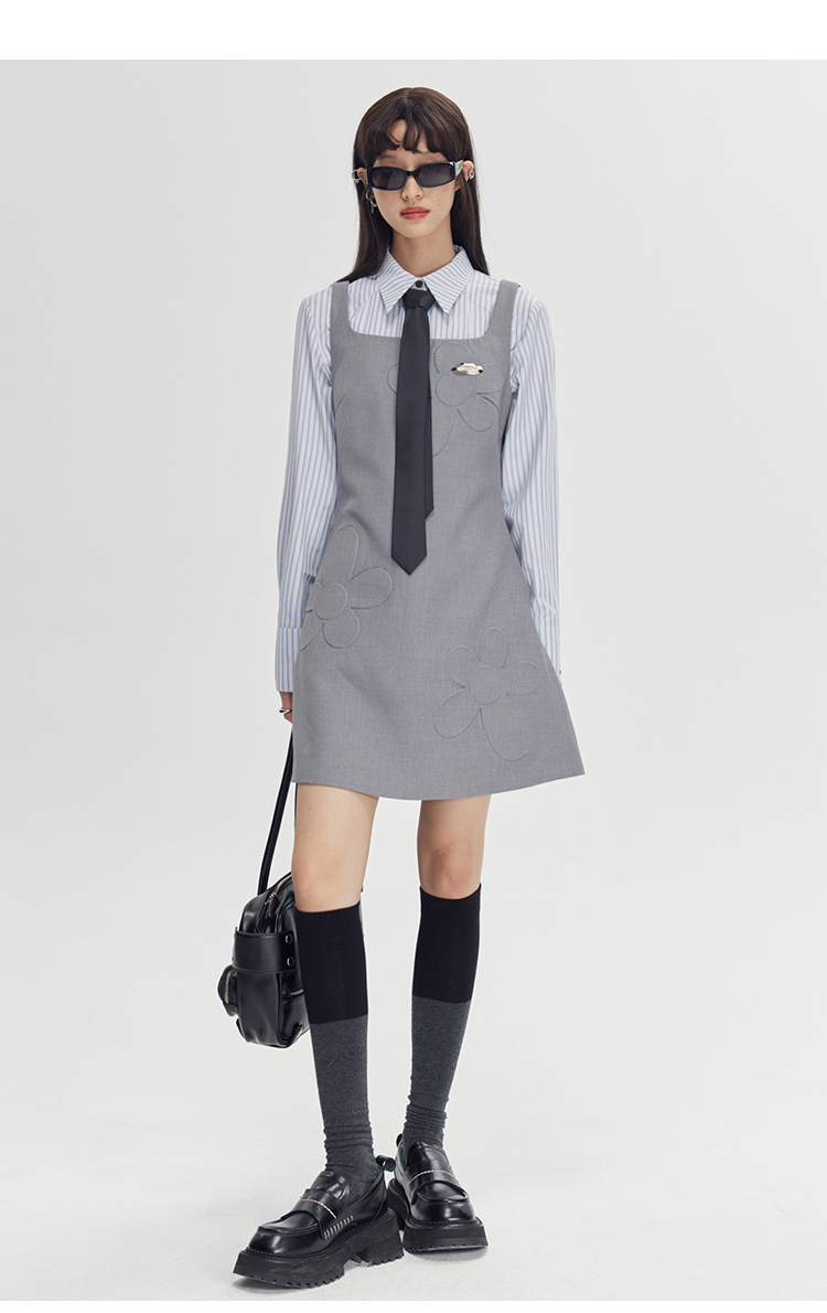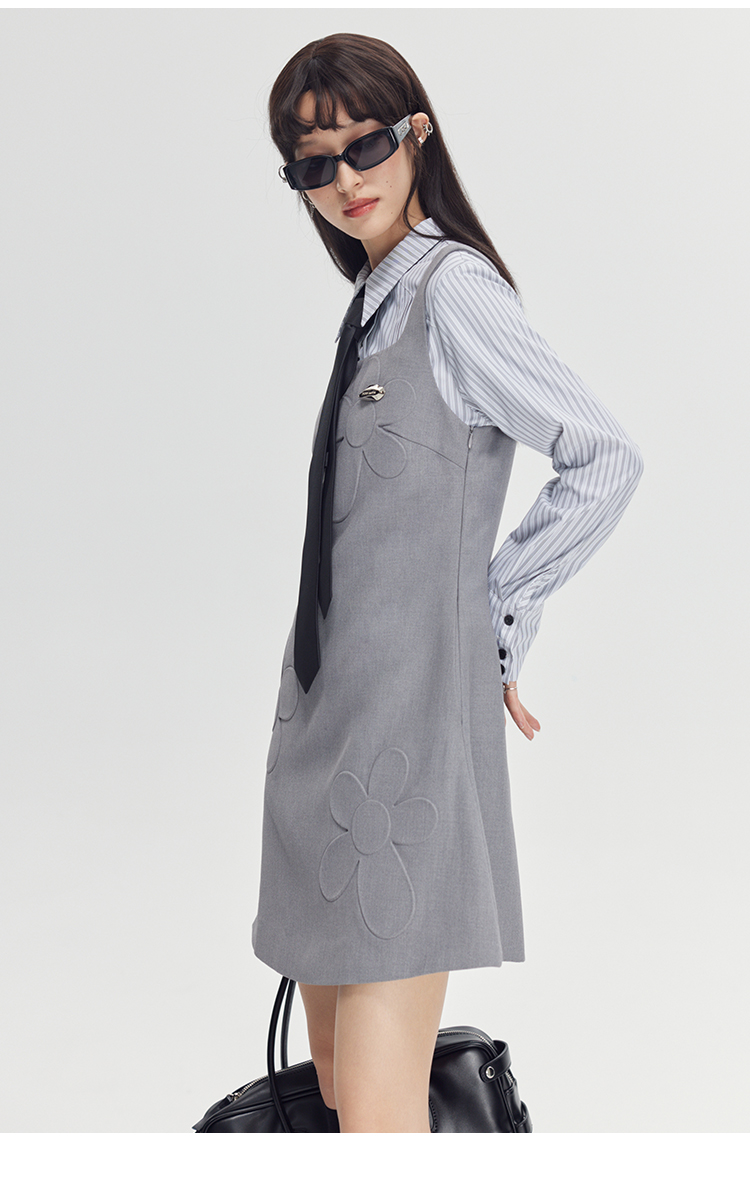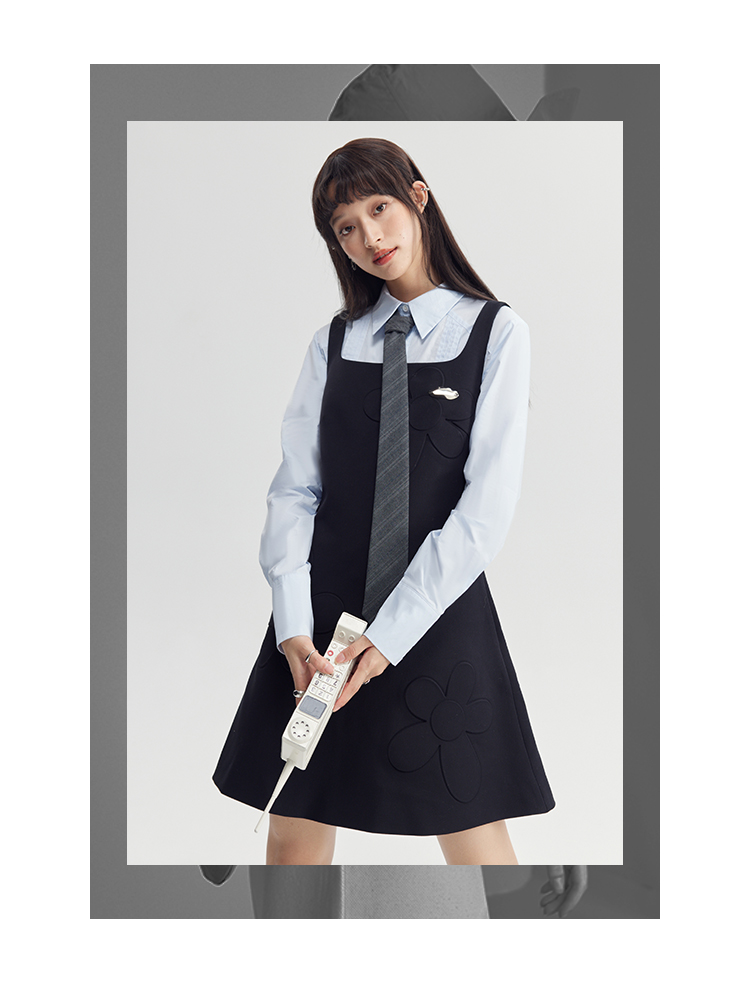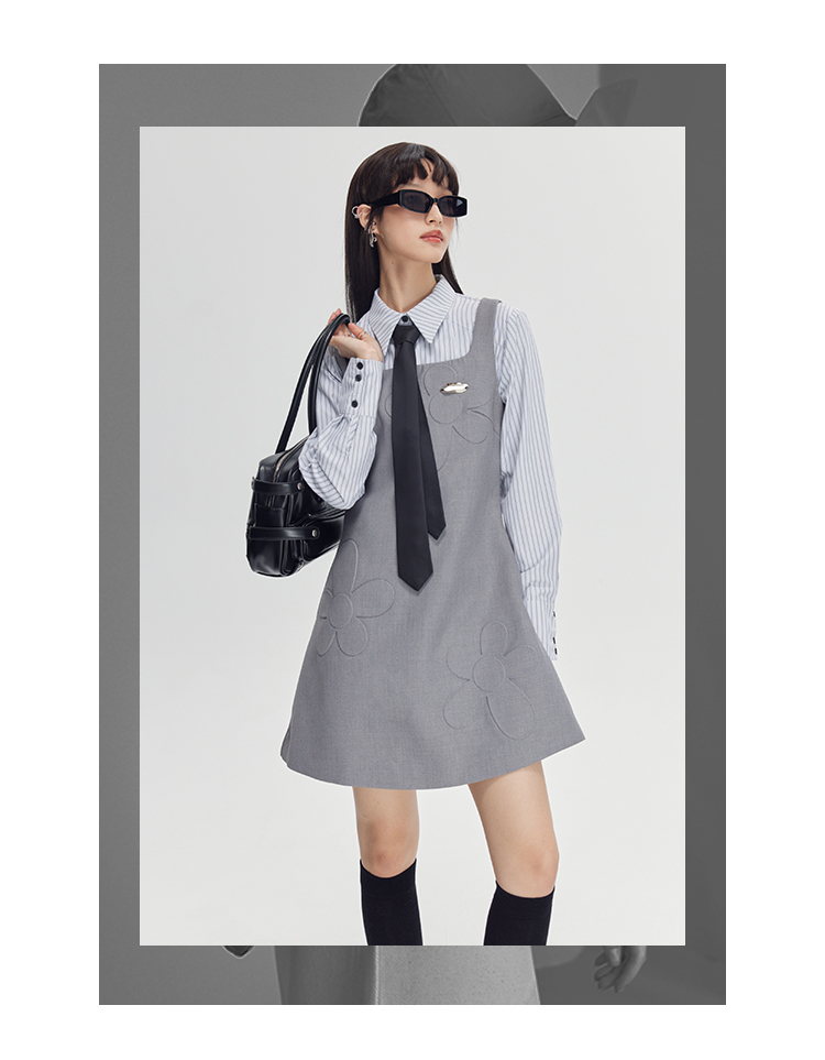 DIDDI 原創設計立體壓花凹凸印學院吊帶裙外搭學院風辣妹短裙春款
