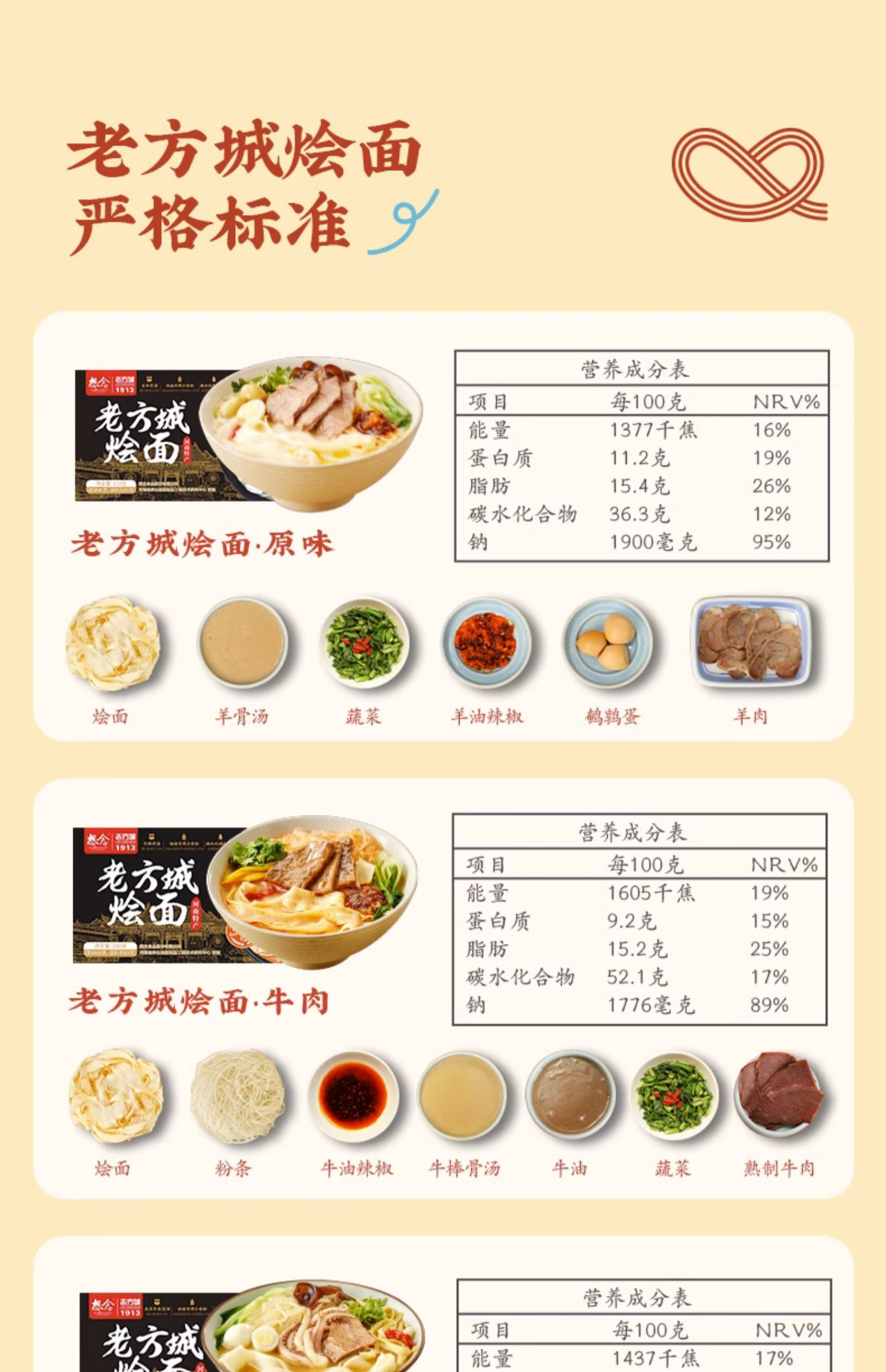 想念老方城羊肉燴面1913河南地道牛肉燴面特產懶人速食早餐面5盒