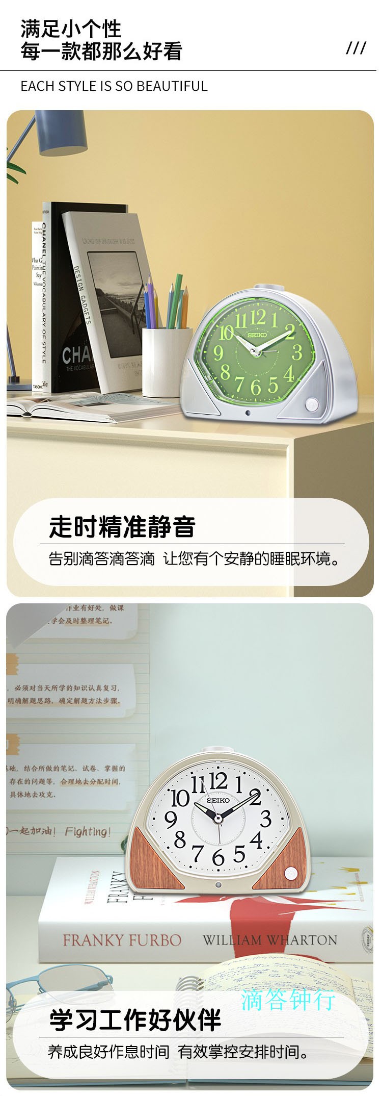 正品seiko日本精工靜音學生鬧鐘
