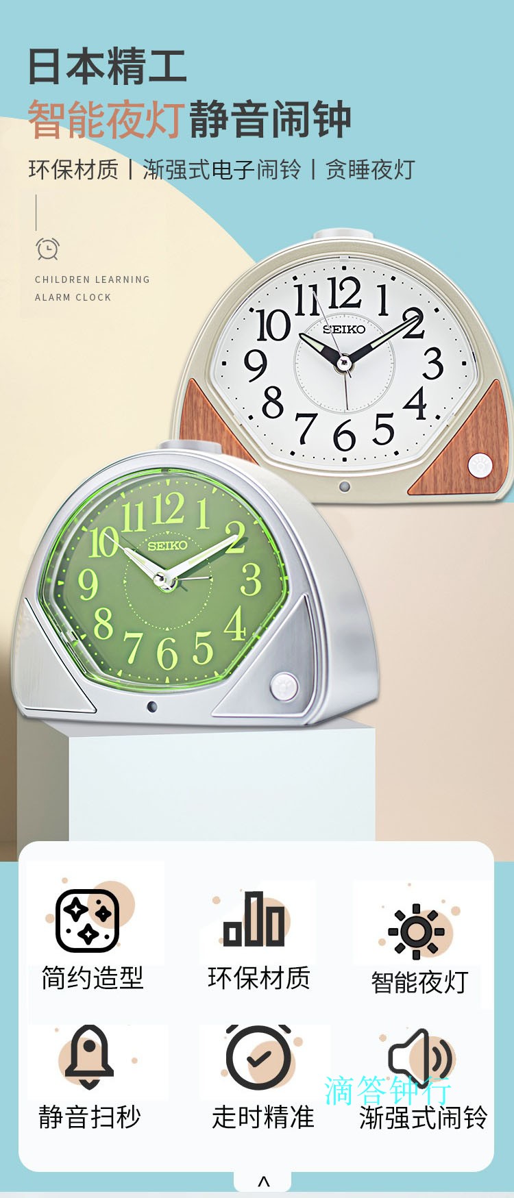 SEIKO日本精工靜音常亮夜燈貪睡兒童臥室鬧鐘QHK057/QHE188