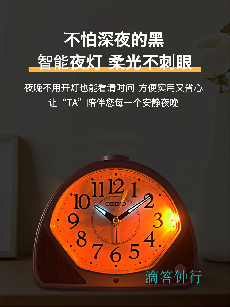 SEIKO日本精工鐘表床頭夜光學生兒童靜音自動夜燈簡約鬧鐘QHE188K