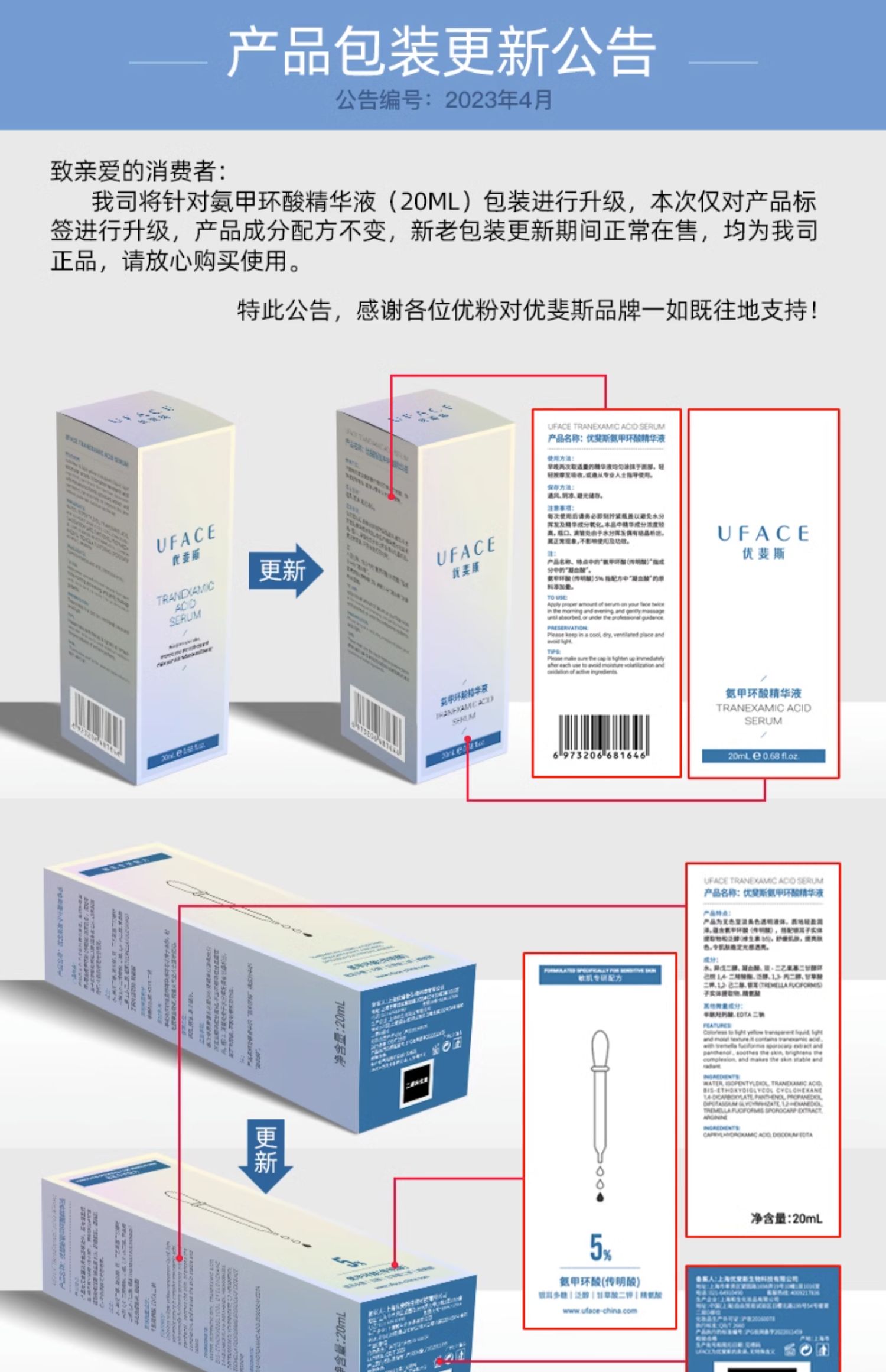 優斐斯氨甲環酸傳明酸高濃度精華液