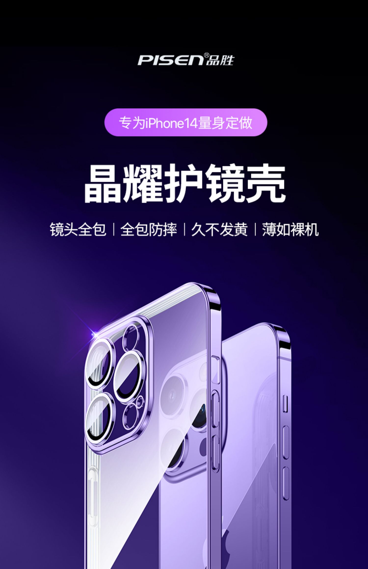 品勝適用蘋果14手機殼新款iPhone14ProMax透明plus保護套超薄13pro全包防摔12自帶鏡頭膜男女情侶潮外高級感