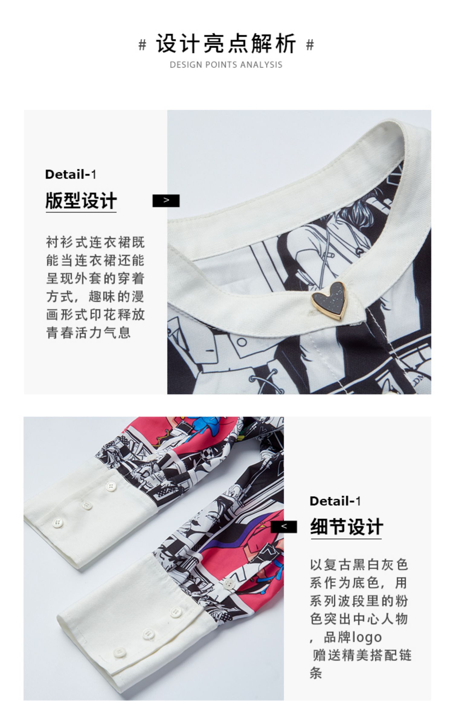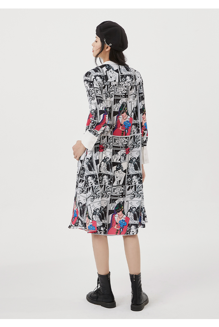 【商場同款】六町目早秋潮酷風設計原創漫畫印花單排扣長袖連衣裙