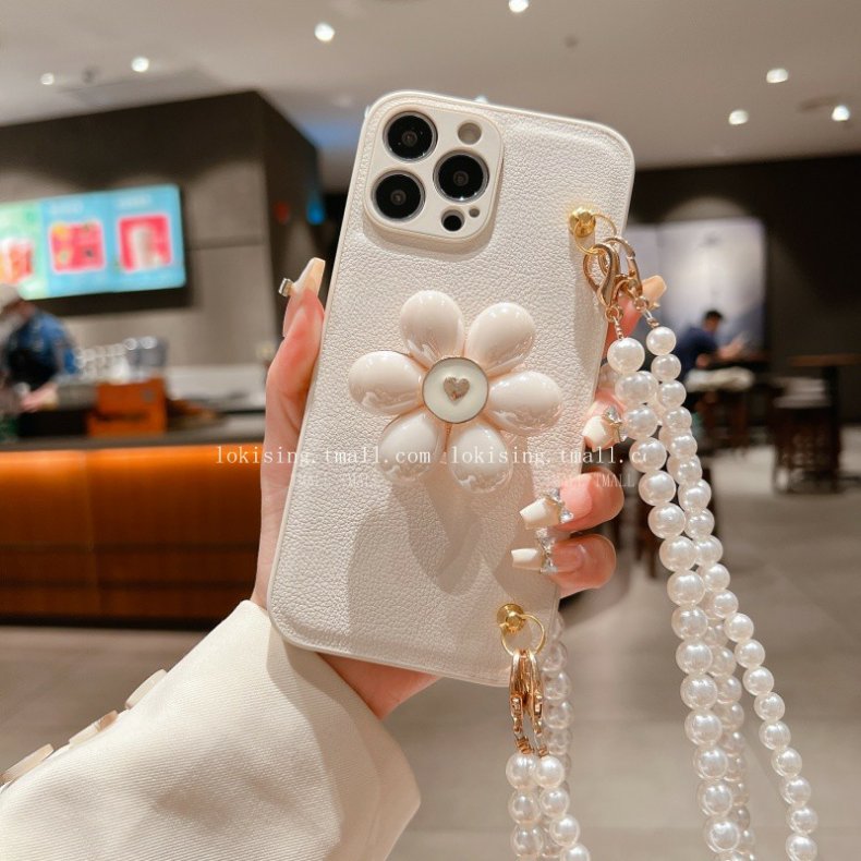 斜挎珍珠背帶掛繩蝴蝶結防摔手機殼