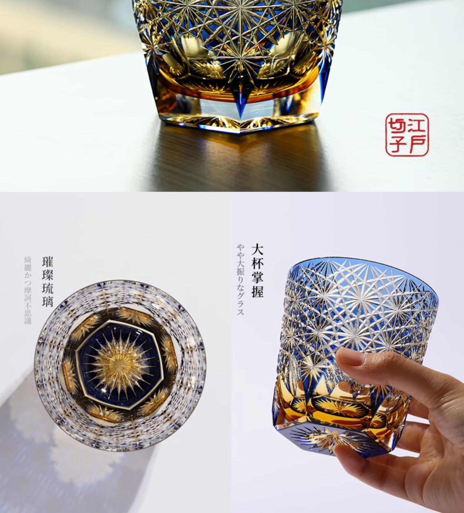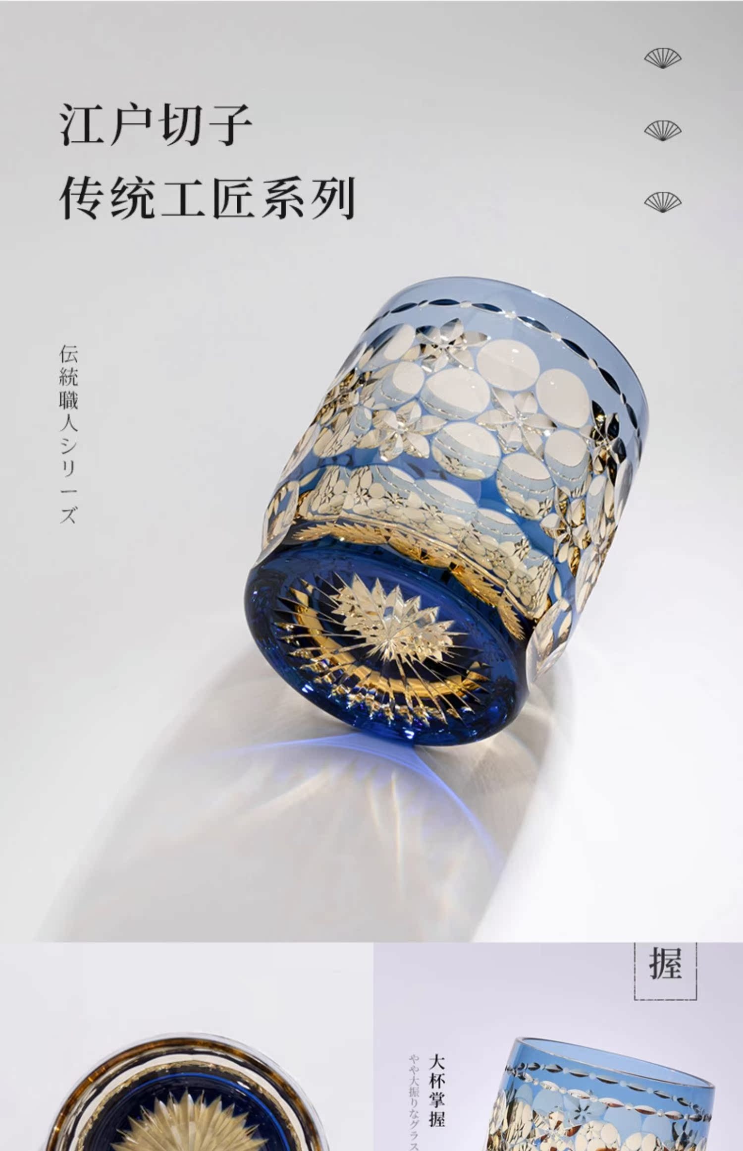 【限量套色款】KAGAMI江戶切子杯大師手作玉舞曙光洛克杯子藍雛菊