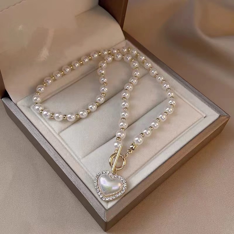 愛心珍珠項鏈輕奢小眾高級感鎖骨鏈2023新款法式氣質頸鏈配飾女