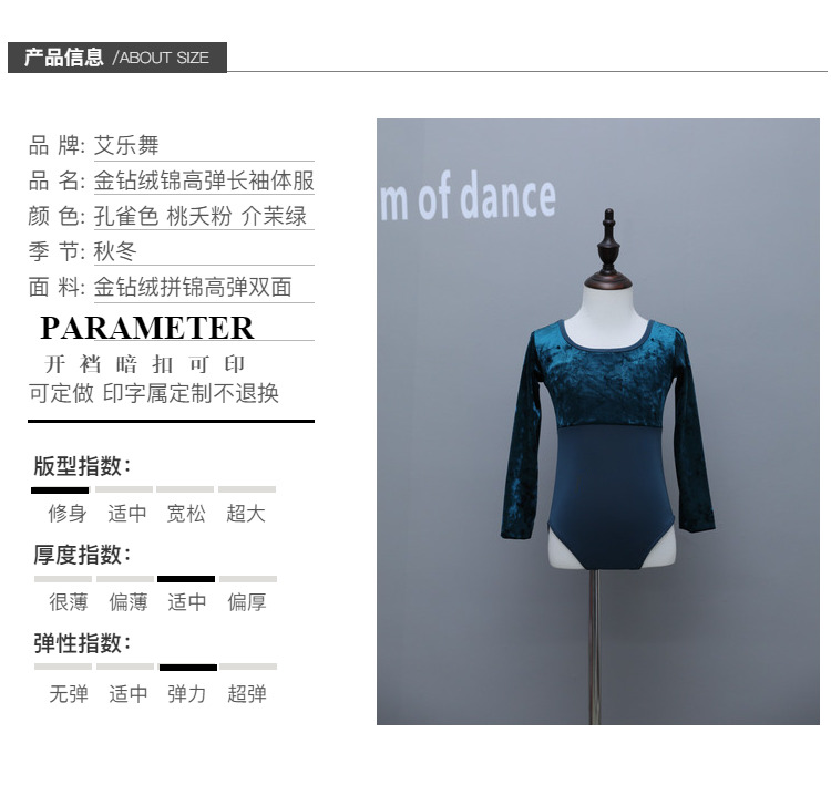 金鉆絨兒童芭蕾春季女孩長袖跳舞衣