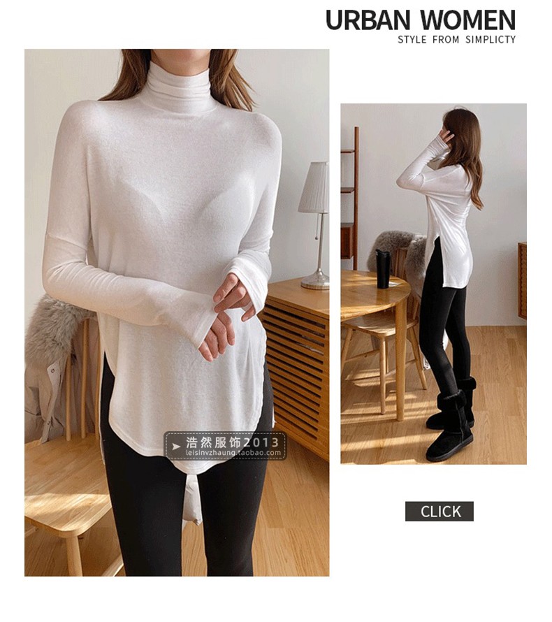 元熙621木耳邊高領中長秋冬打底衫