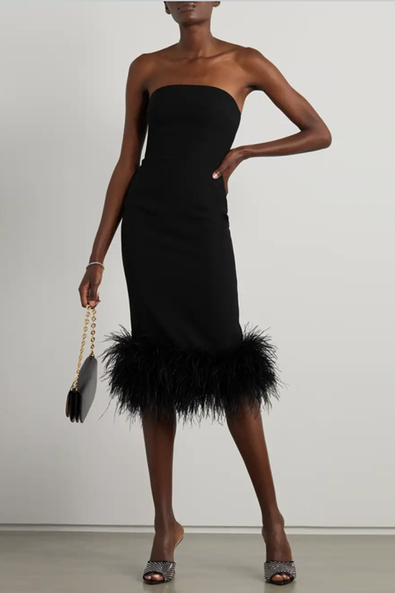 晚禮服鴕鳥毛高端氣質女2023新款時尚中長款派對宴會小禮服連衣裙