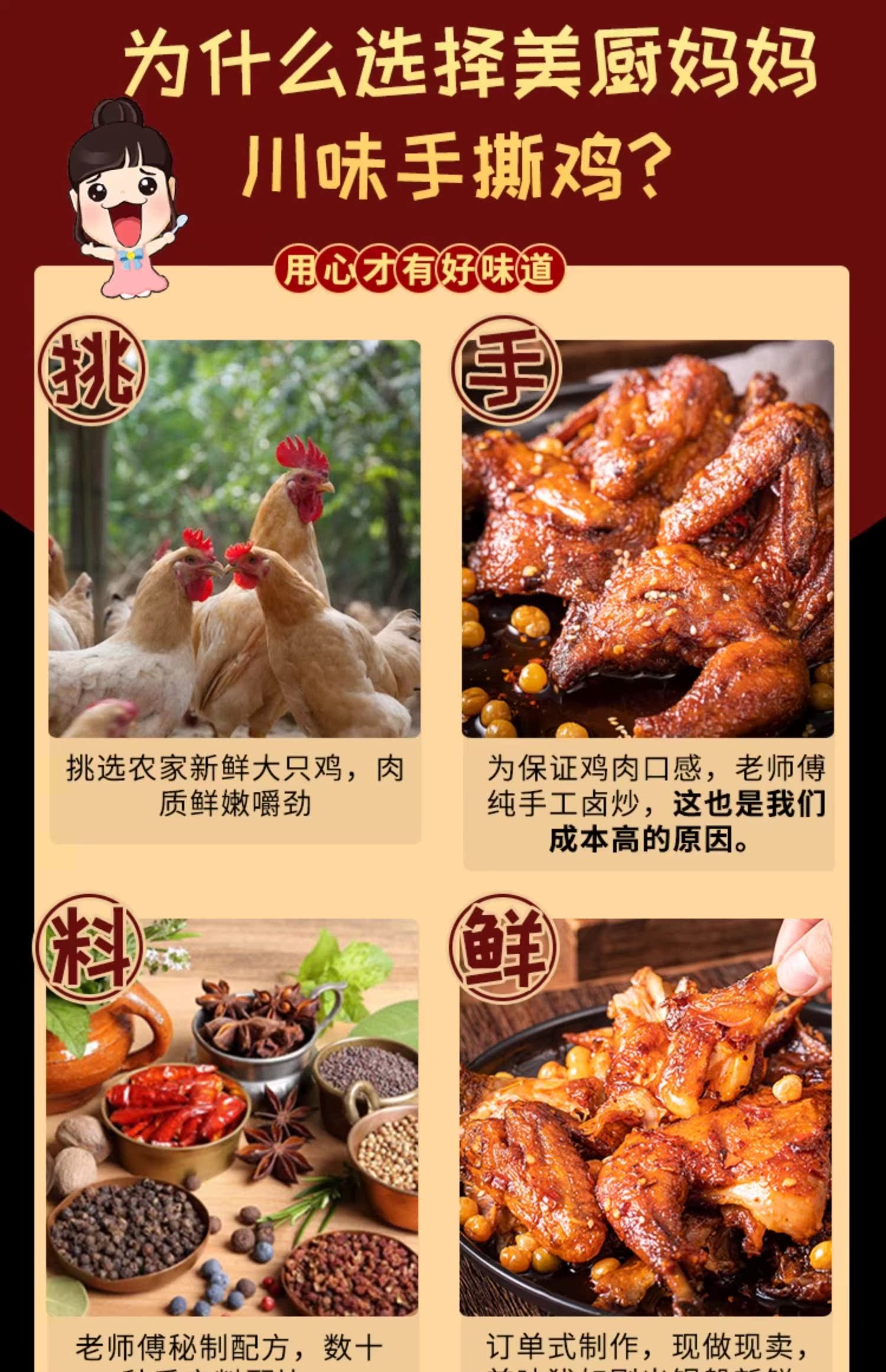 麻辣手撕雞整只香辣椒麻扒雞鹵味熟食四川美食特產小吃美廚媽媽