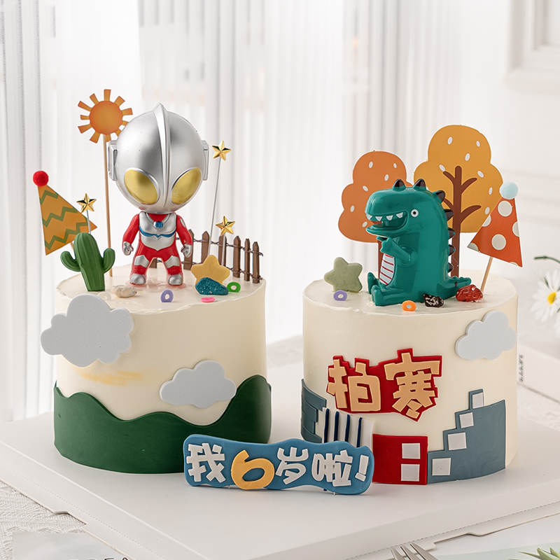 兒童情景蛋糕裝飾卡通英雄超人打小怪獸恐龍寶寶周歲生日帽插件