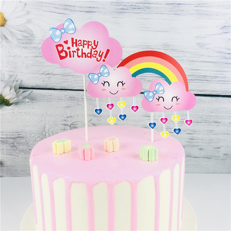 10支裝雙層蛋糕裝飾我幾歲啦風車彩虹我一歲啦生日快樂烘焙插旗