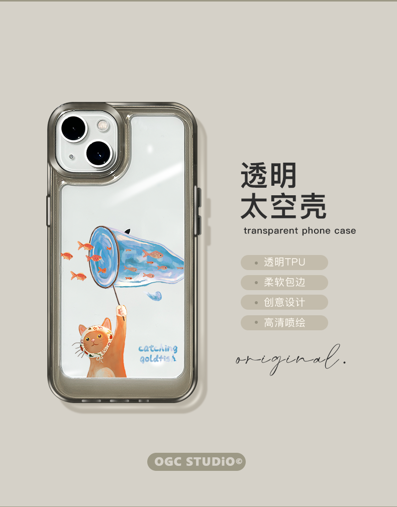 適用于蘋果15太空可愛貓咪軟殼14promax卡通小眾11pro透明軟殼不易撞款個性13小眾新款創意高級感防摔套ins