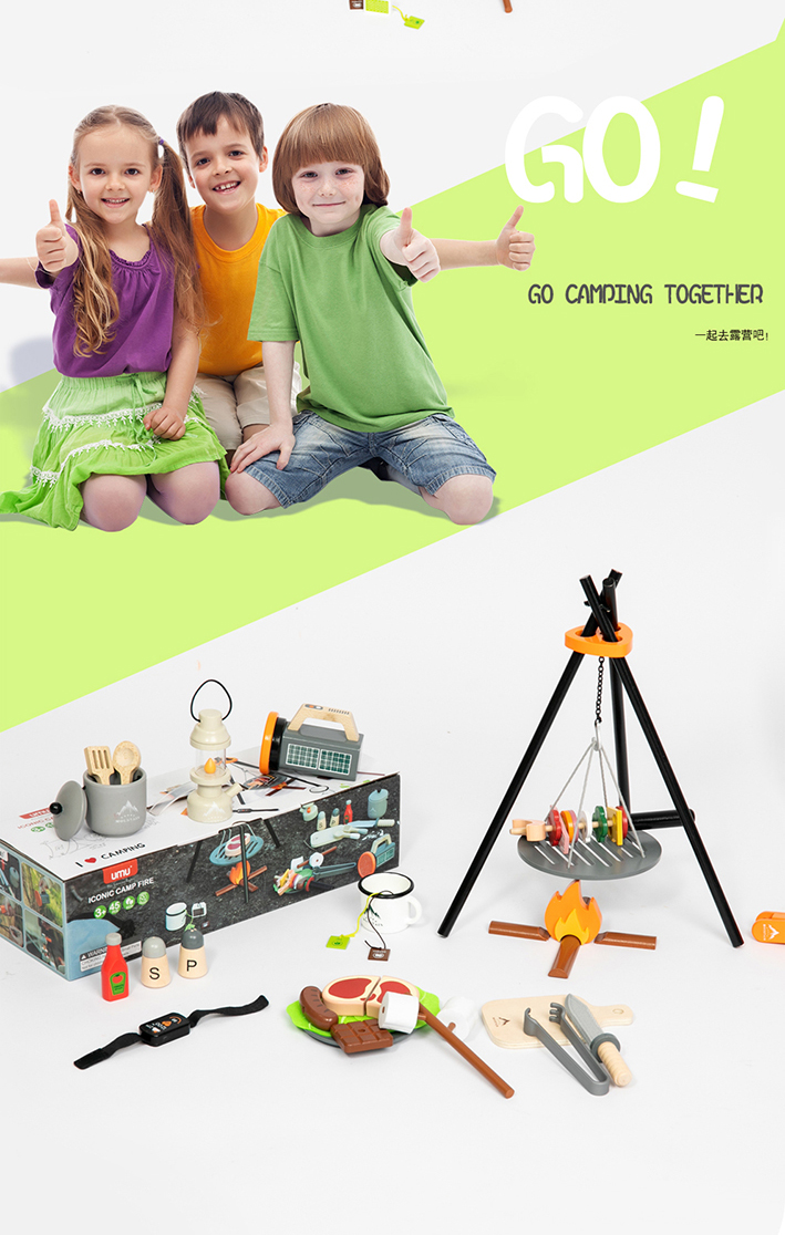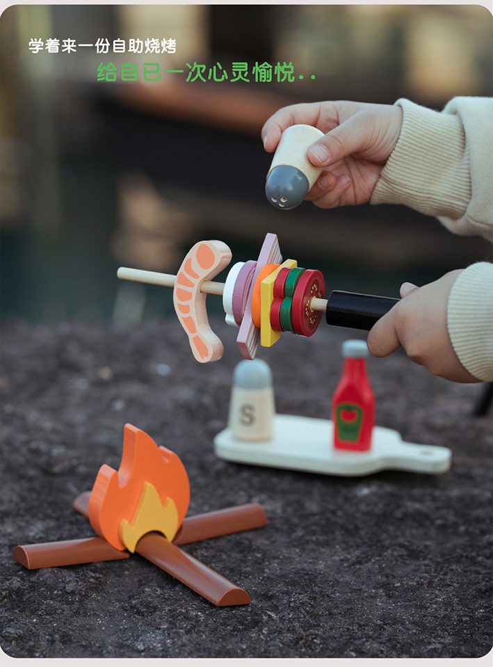 優木仿真篝火游戲野炊燒烤架廚房過家家切切樂套裝玩具男女孩禮物