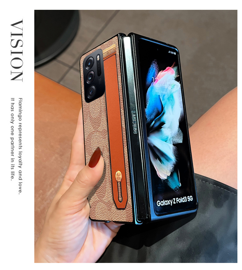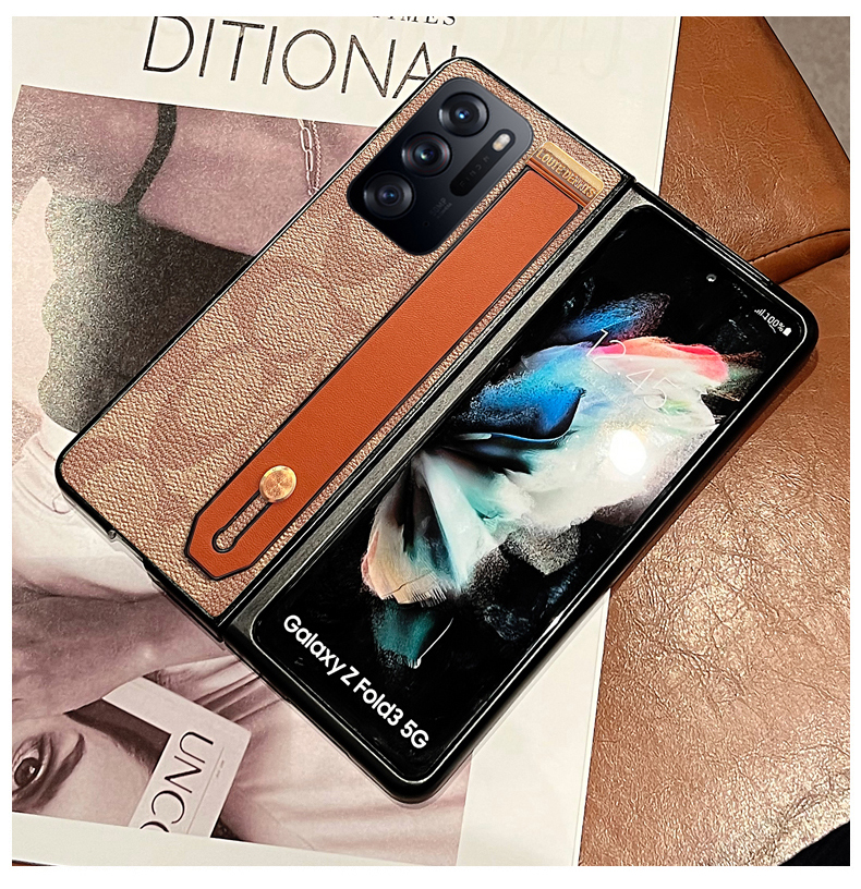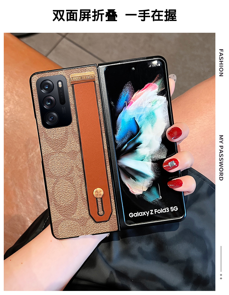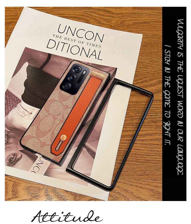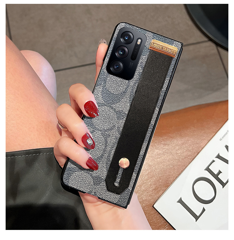 OPPOFindN2手機殼歐美復古風CC腕帶可支架超薄折疊外殼折疊屏防摔保護皮套find n全包邊FIND N男女款殼適用于