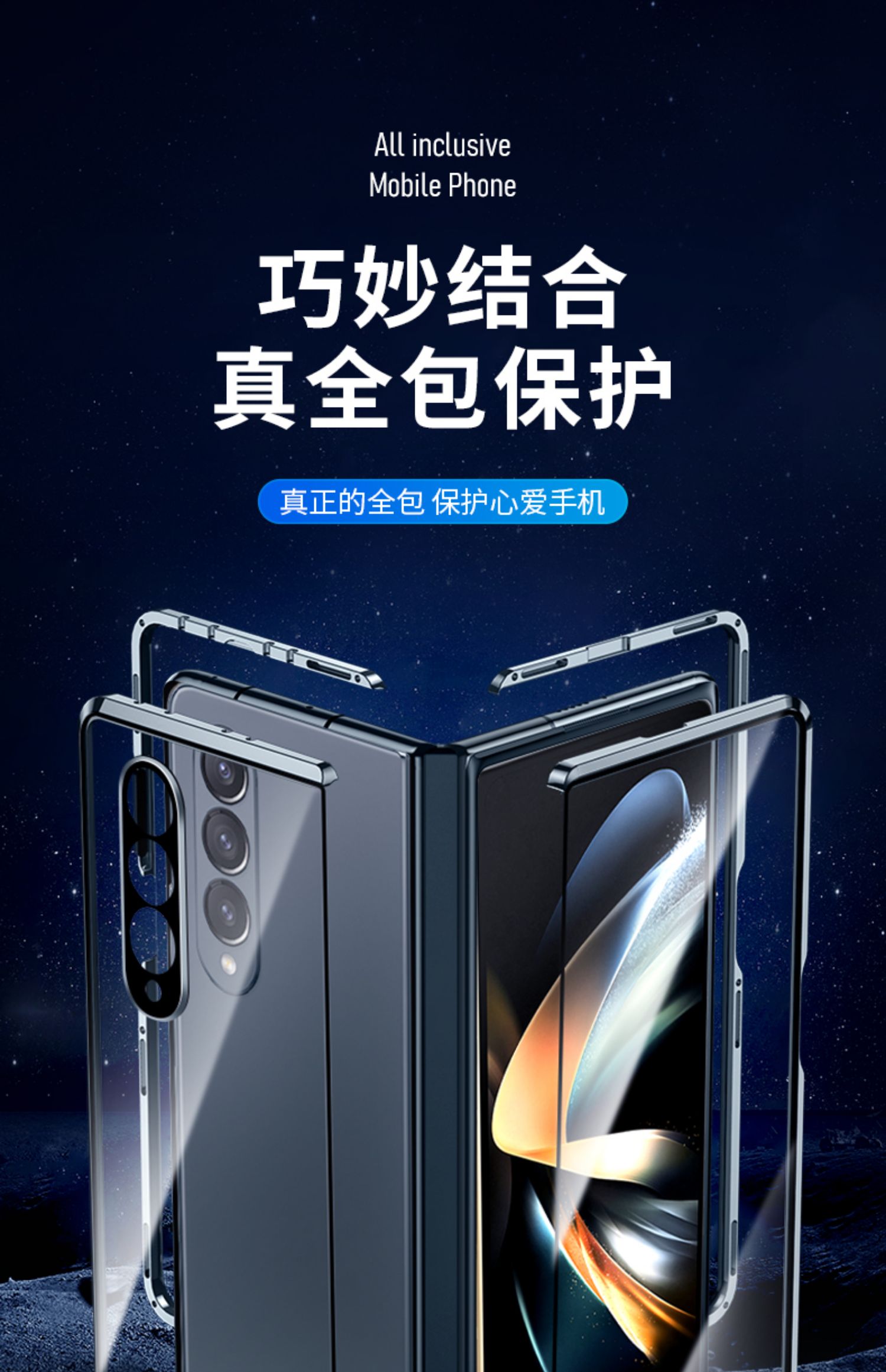 適用于三星fold4手機殼折疊屏防窺保護殼超薄潮牌Galaxy z flod4折疊屏殼膜一體透明防摔全包fold3雙面玻璃殼