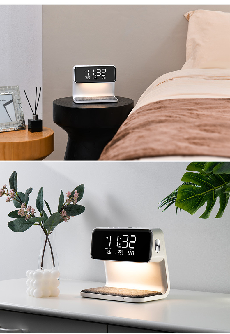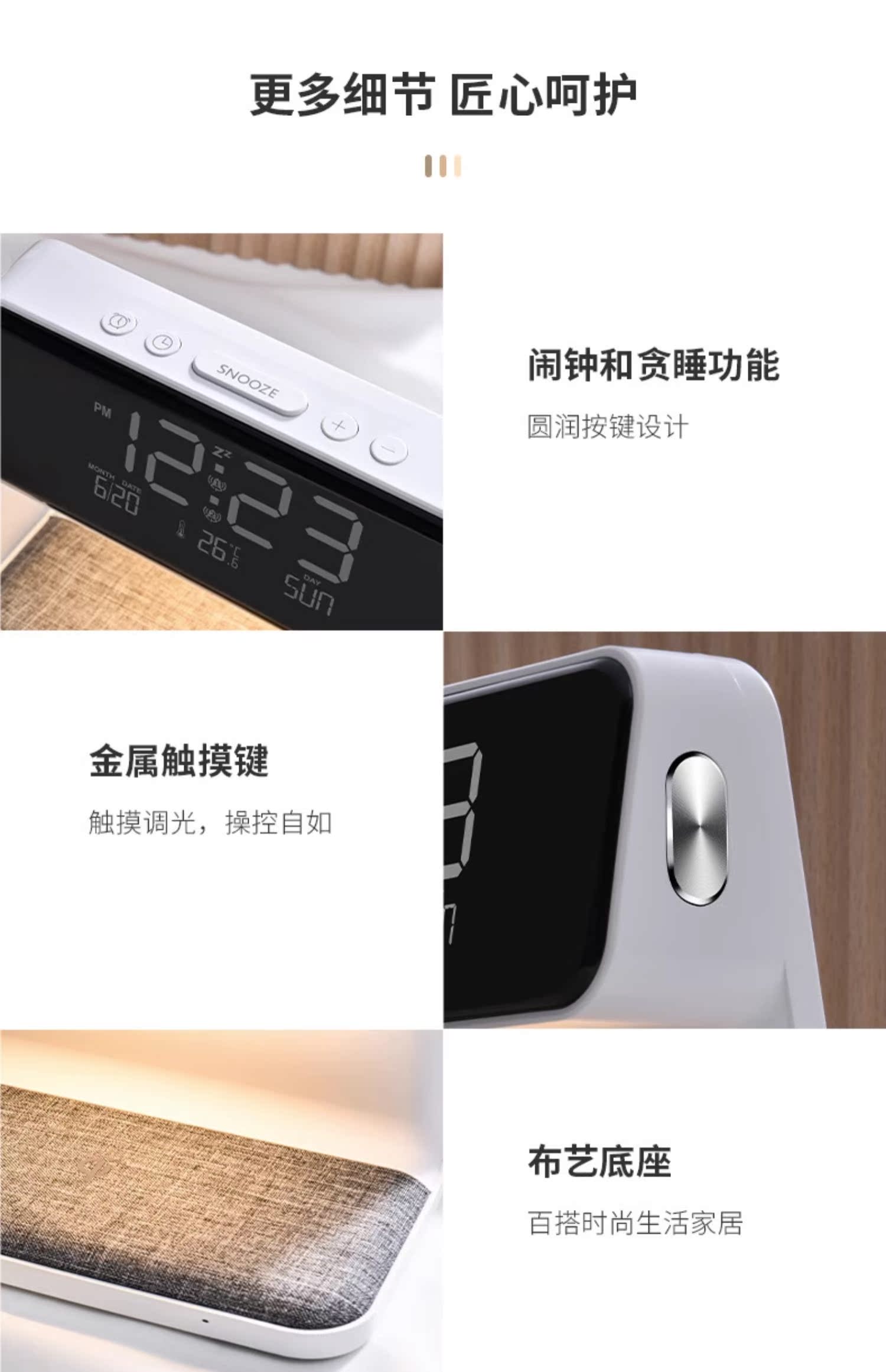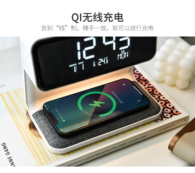 2022新款手機無線充電電子鬧鐘學生用時鐘桌面臺式擺件臺燈床頭燈