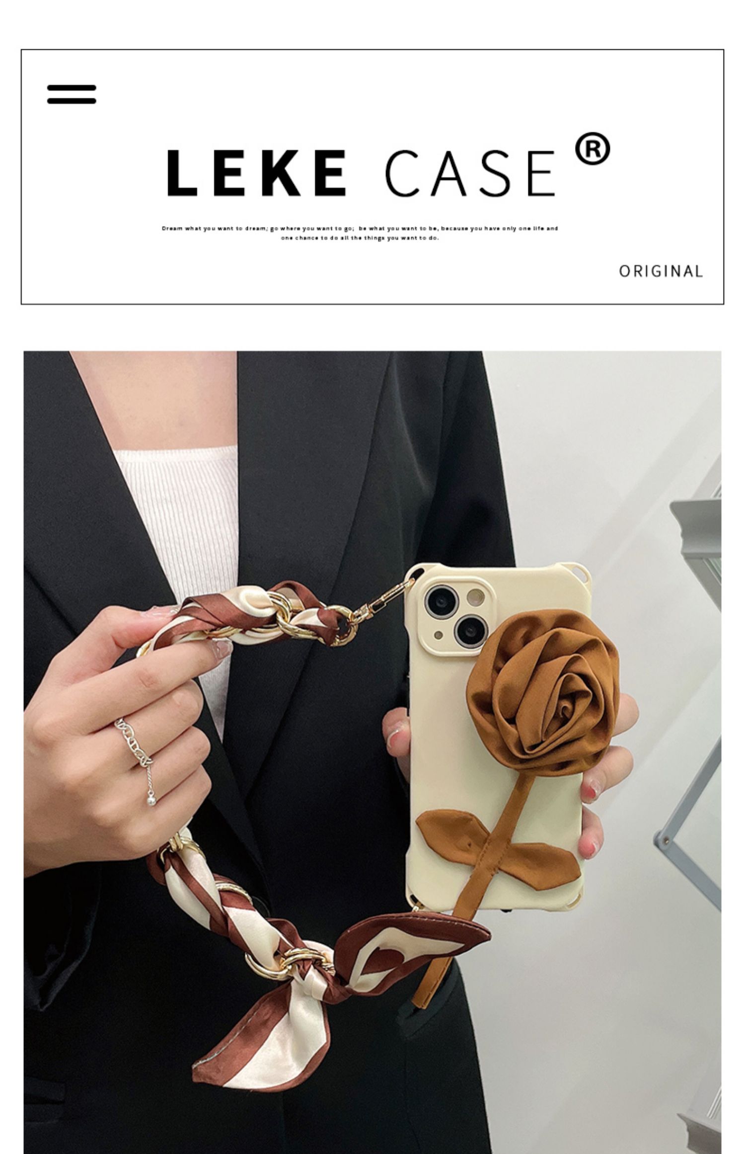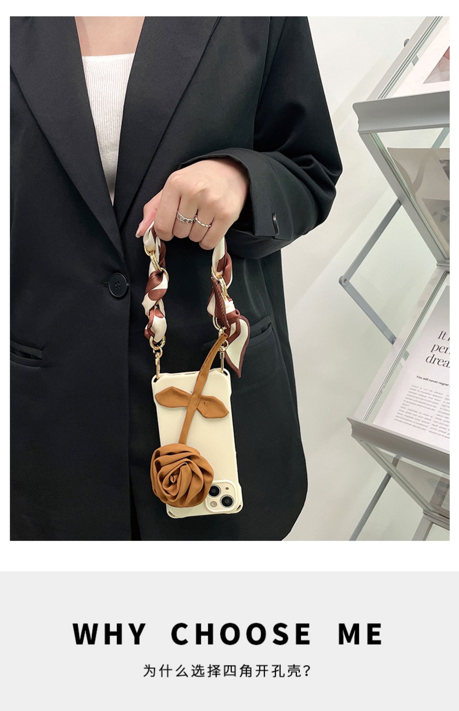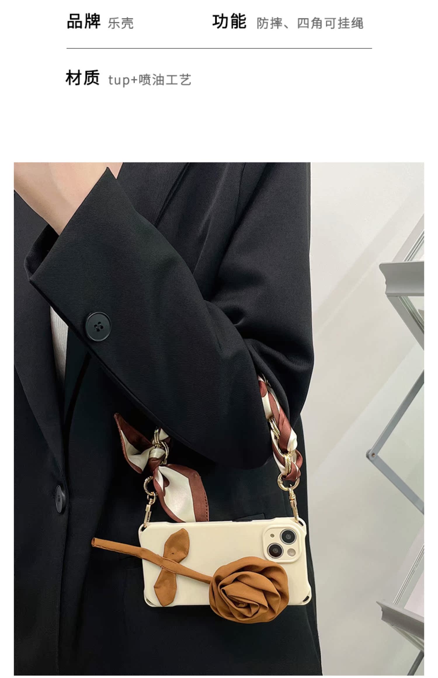 樂殼原創適用蘋果13手機殼鏈條絲巾iphone12promax四角開孔白色14玫瑰花朵xsm腕帶手提11pro小眾高級感13pro